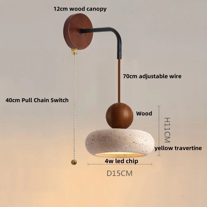 Nordic LED Wood Wall Sconce Yellow Travertine Bedside Lamp for Modern Home