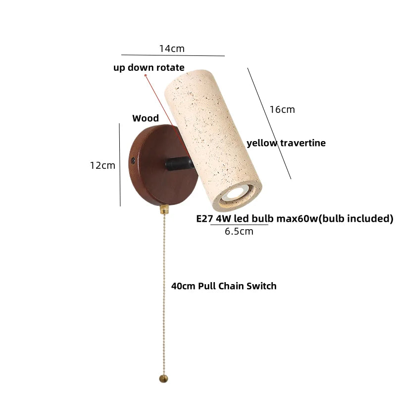 Crafted from high-quality materials, this wall light is not only aesthetically pleasing but also durable and long-lasting. The yellow travertine stone lampshade adds a touch of elegance, while the wood canopy complements the overall look.