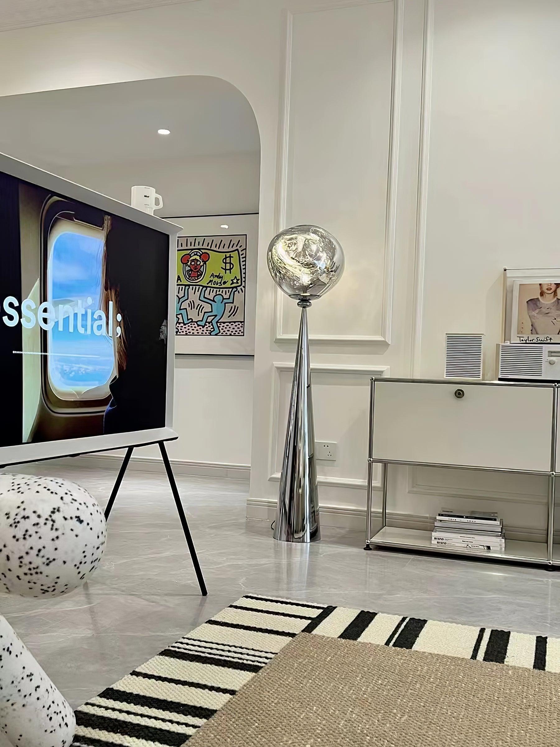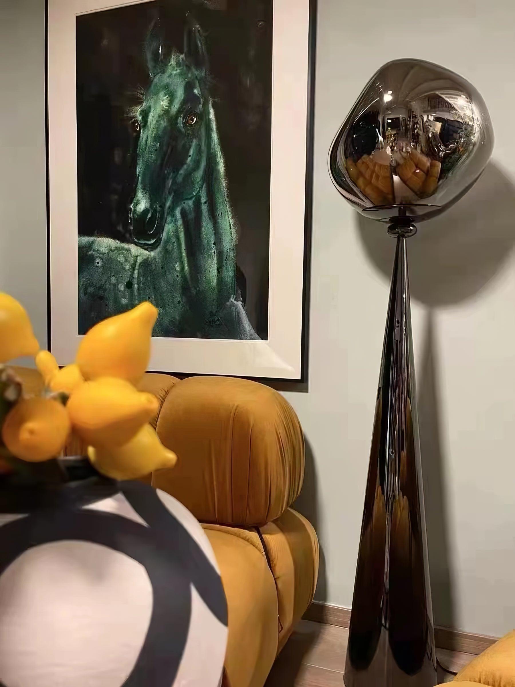 Our Lava Cone Floor Lamp offers enchanting, subtle, and dreamlike illumination. When switched on, its mesmerizing melting hot blow glass effect takes form, while when off, it gives off a mirrored effect to captivate your home.