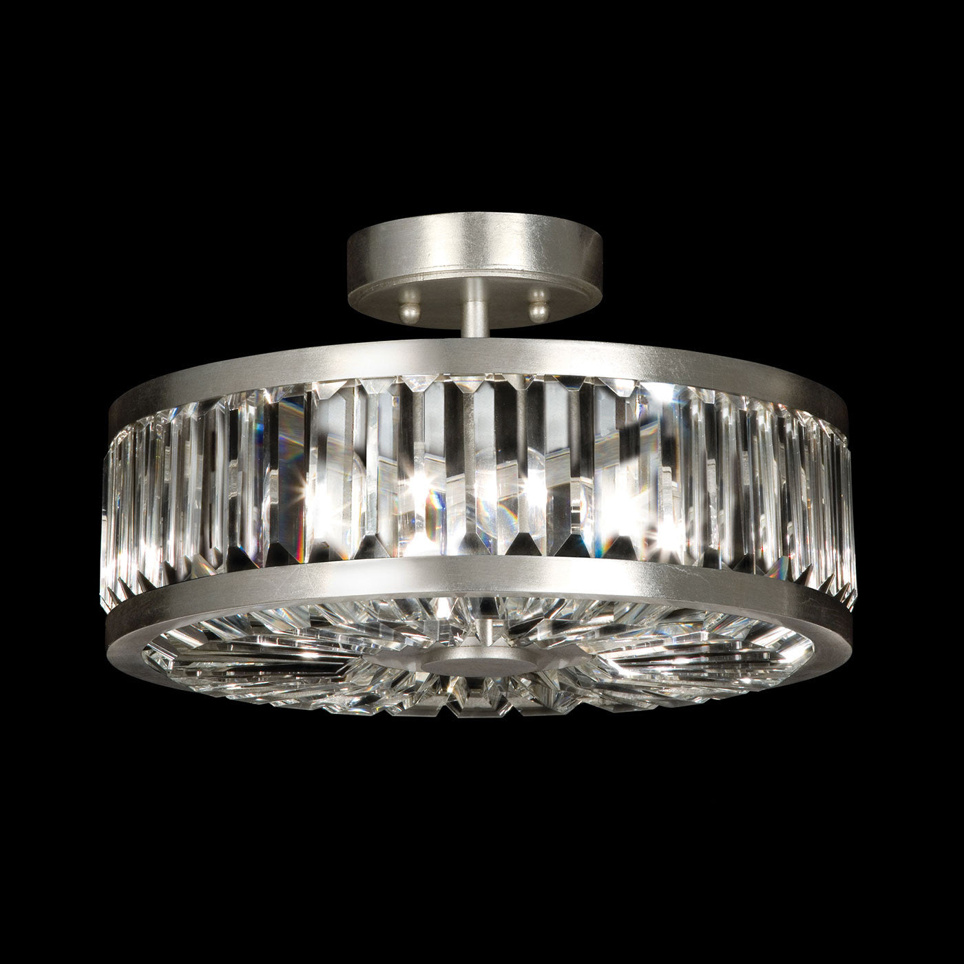 Semi Flush in a modern design of multi-faceted crystal panels, set in metal frames that refract light and create an enchanting aura highlighting appointments and transforming a space with extraordinary effect. Available in Silver and Gold finish.