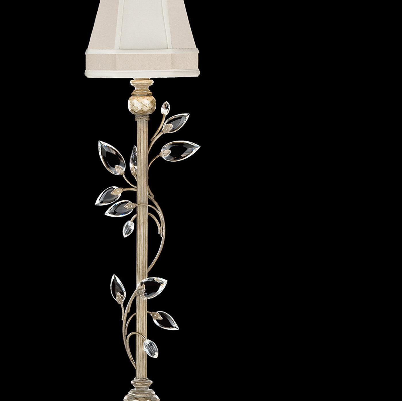Console Lamp available in Gold Leaf with either Champagne fabric shade or Black fabric shade & Gold inner lining shade, Silver Leaf with either White fabric shade or Black fabric shade & Silver inner lining shade, Silver with beige shade and Gold with Beige shade.