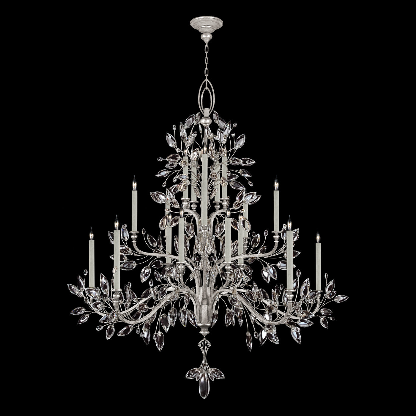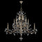 Chandelier with antiqued candlesticks featuring stylized faceted crystal leaves. Available in Silver, Gold, Silver Leaf and Gold Leaf finish.