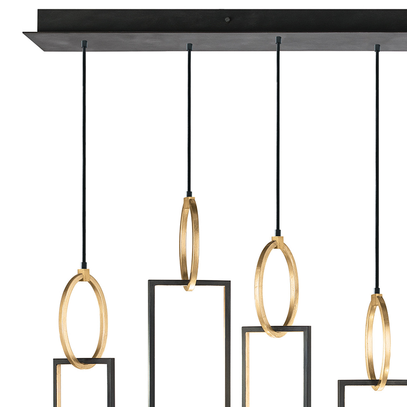 Inspired by the myths and legends of the ancient Oracle of Delphi, this pendant features hand formed glass and is set within a silhouette whose form above all emphasizes purity. Available in silver leaf, gold leaf and hand rubbed black iron with gold leaf interiors, with or without down lights.
