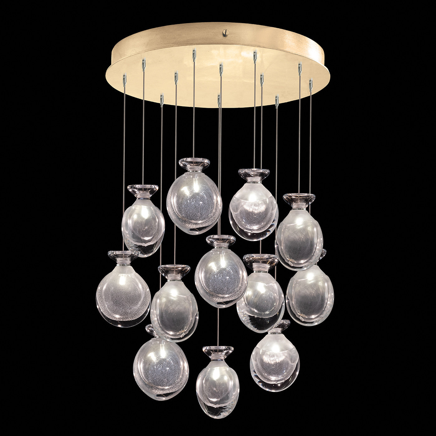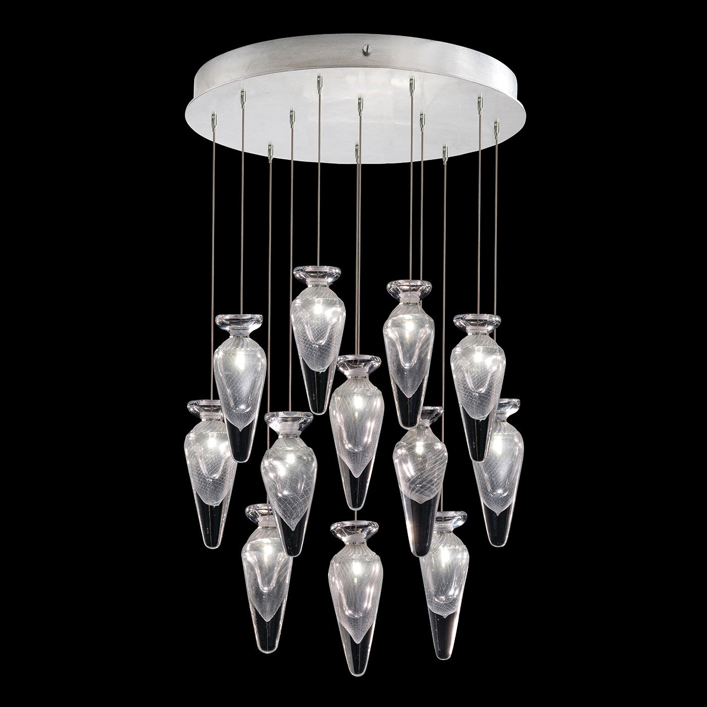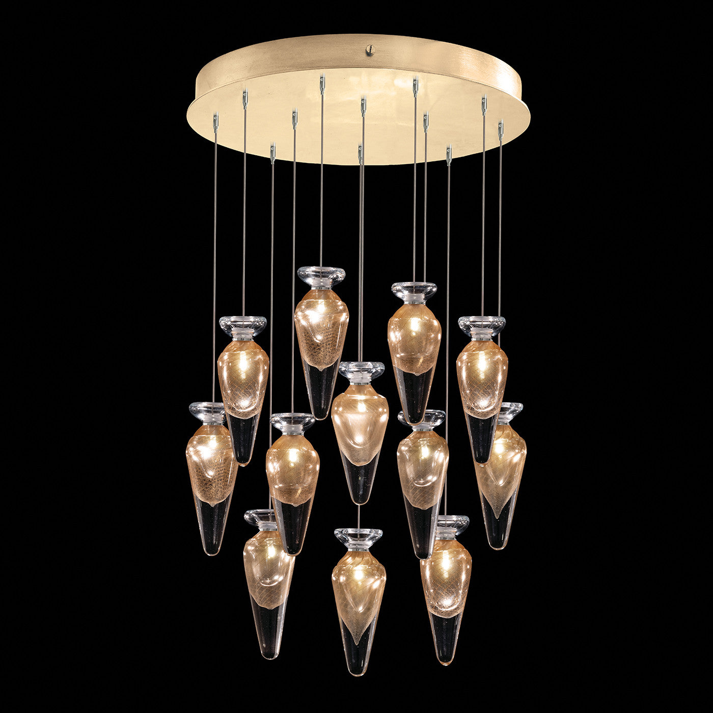 Adjustable pendant inspired from the timeless beauty of vintage scent bottles. Our skilled glass artists have masterfully captured the essence of lightning in a bottle, resulting in exquisite hand-blown designs. Available in standard silver leaf or standard soft gold leaf finish, and your choice of two hand-blown glass options in two different colors.
