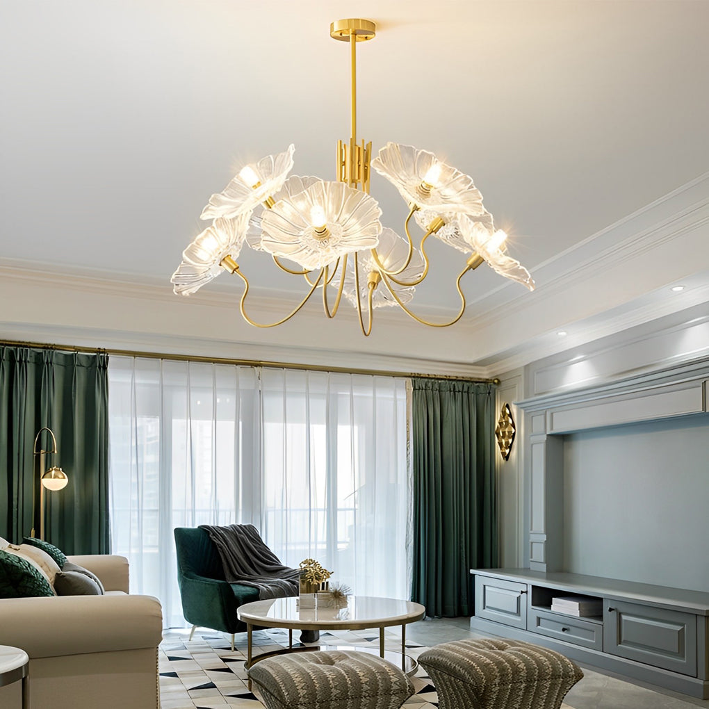 • This ceiling lamp composed of flowers shaped glass lampshades and a copper lamp body is not just beautiful, but also has a delicate texture, and it will look like new after long term use.