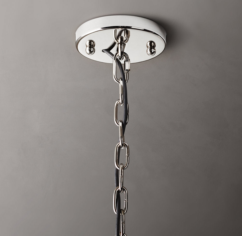 • Suspended from a metal chain and ceiling canopy; chain may be shortened at time of professional installation