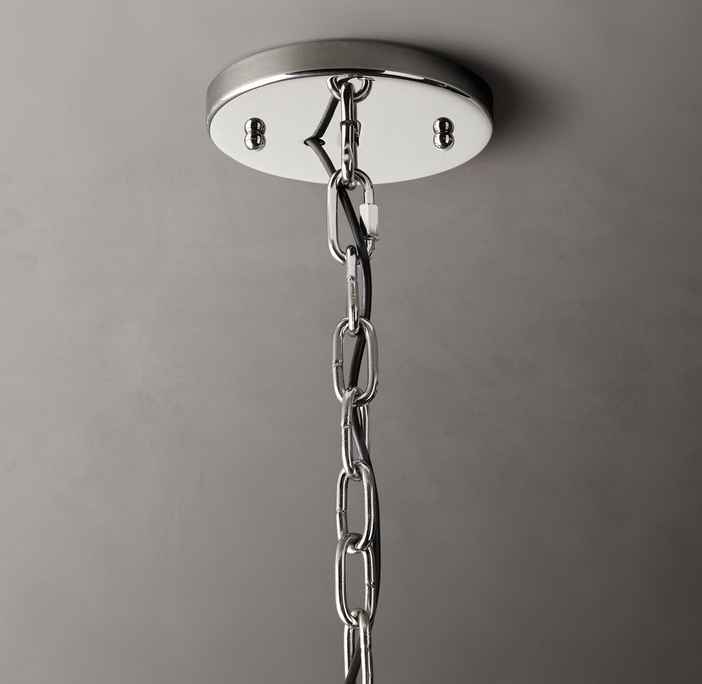 • Suspended from a metal chain and ceiling canopy; chain may be shortened at time of professional installation