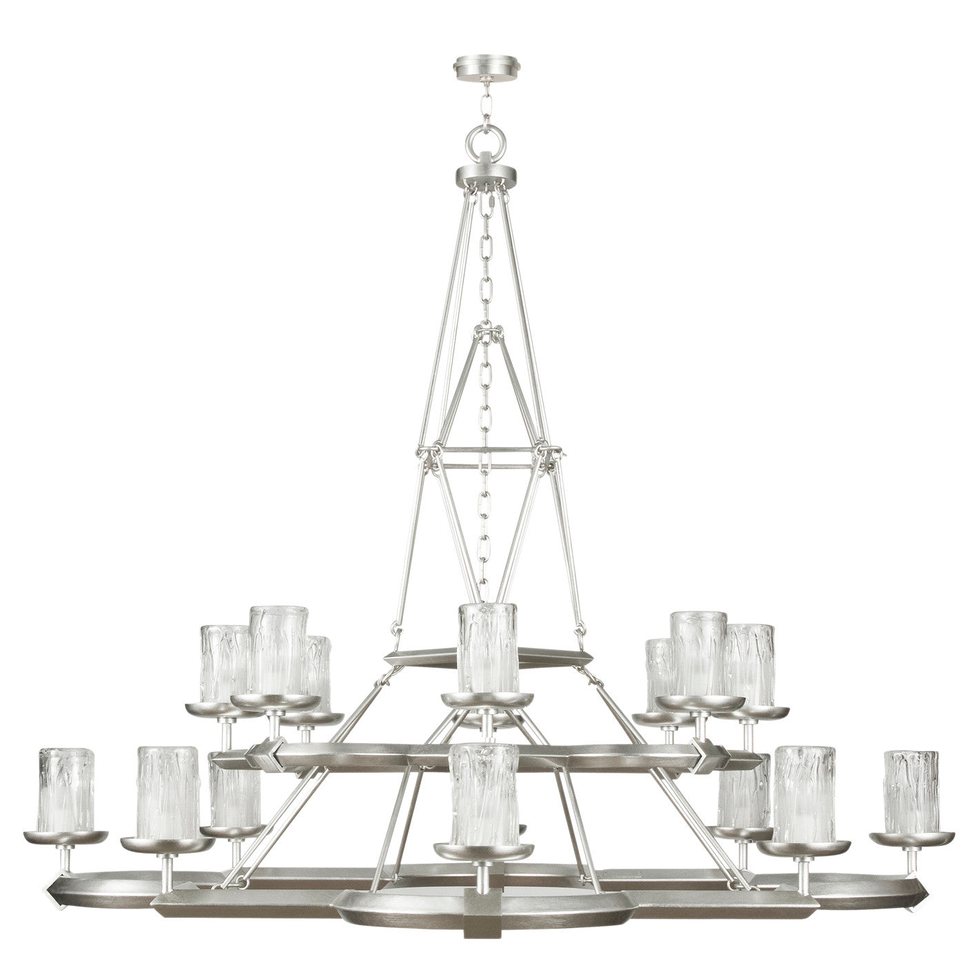 Chandelier executed in hand-crafted metal with extensive component details and articulation. Available in Silver and Bronze finish.