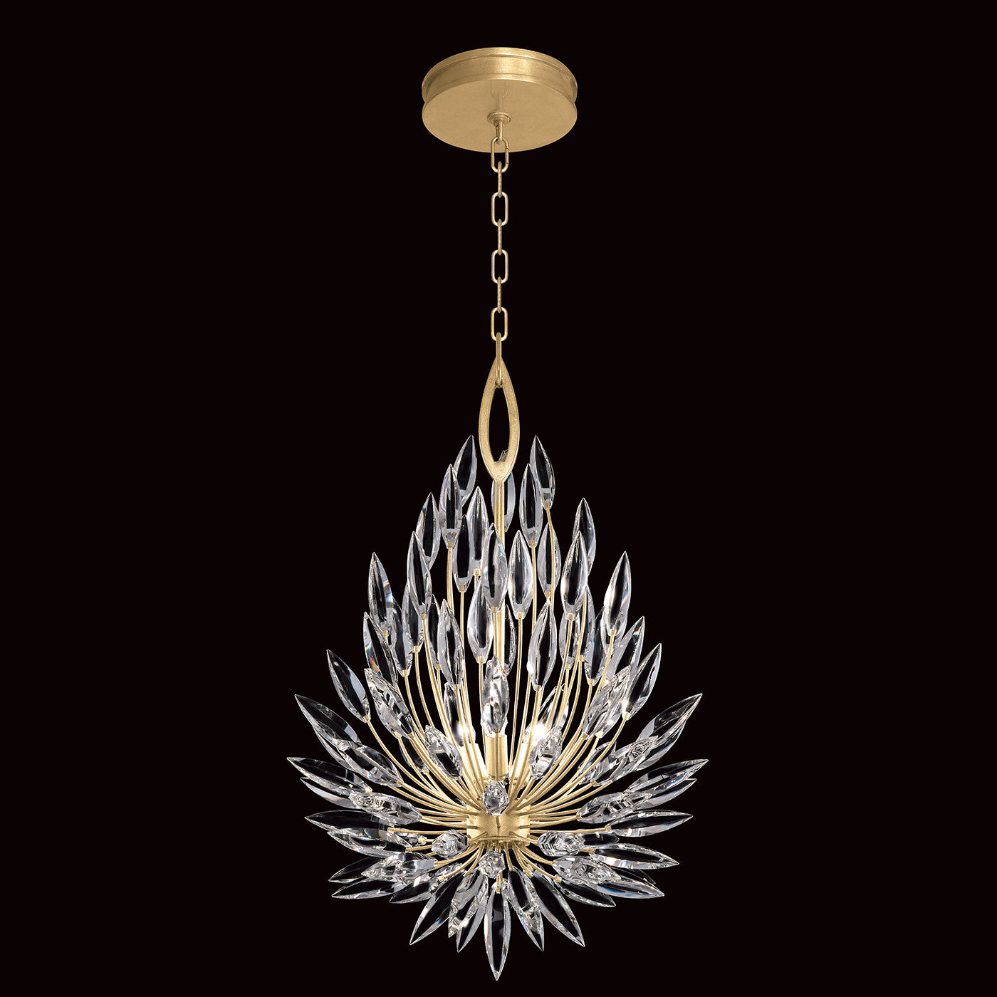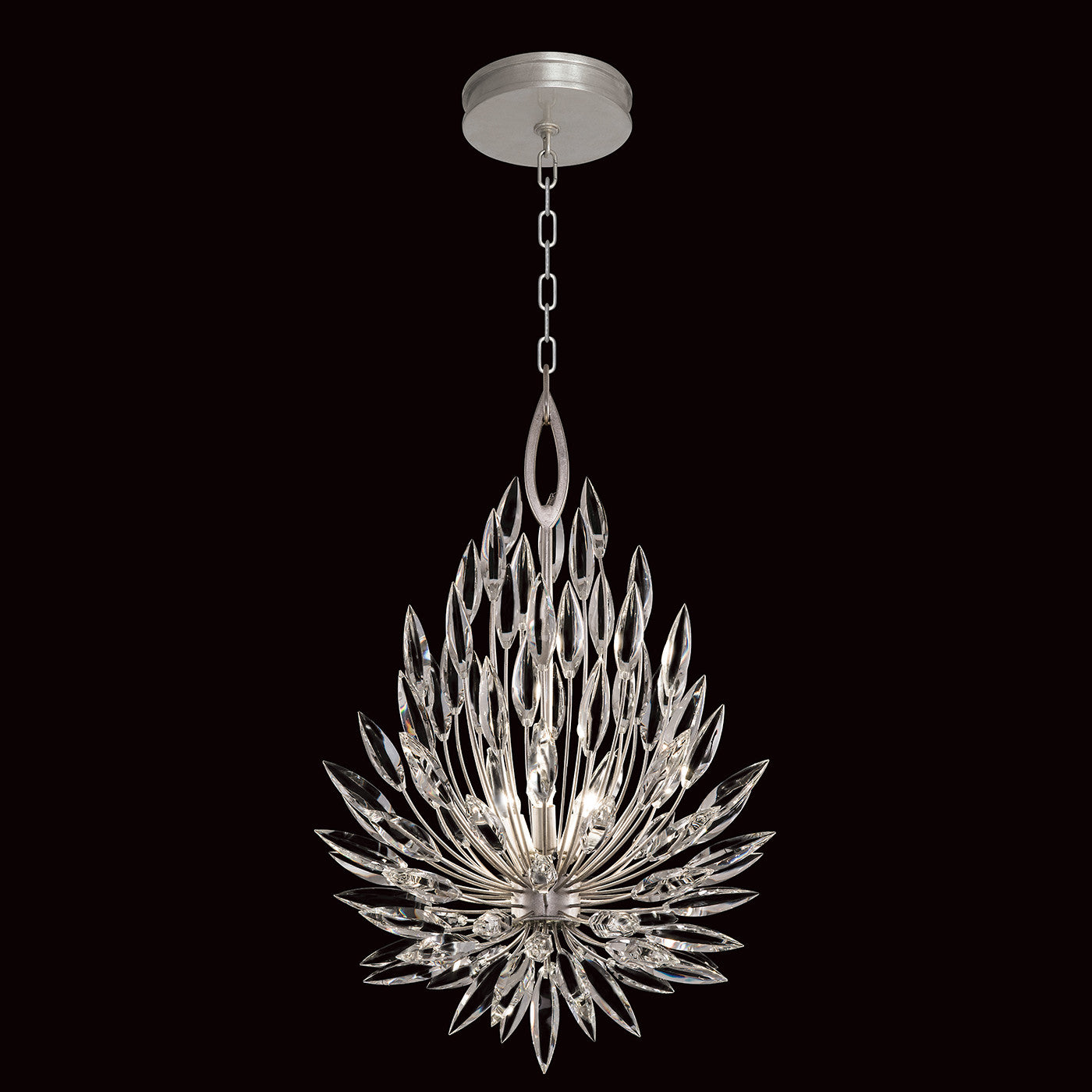 Chandelier with graceful bouquets of faceted crystal lily buds that create a naturally elegant lighting effect. Available in Gold and Silver finish.