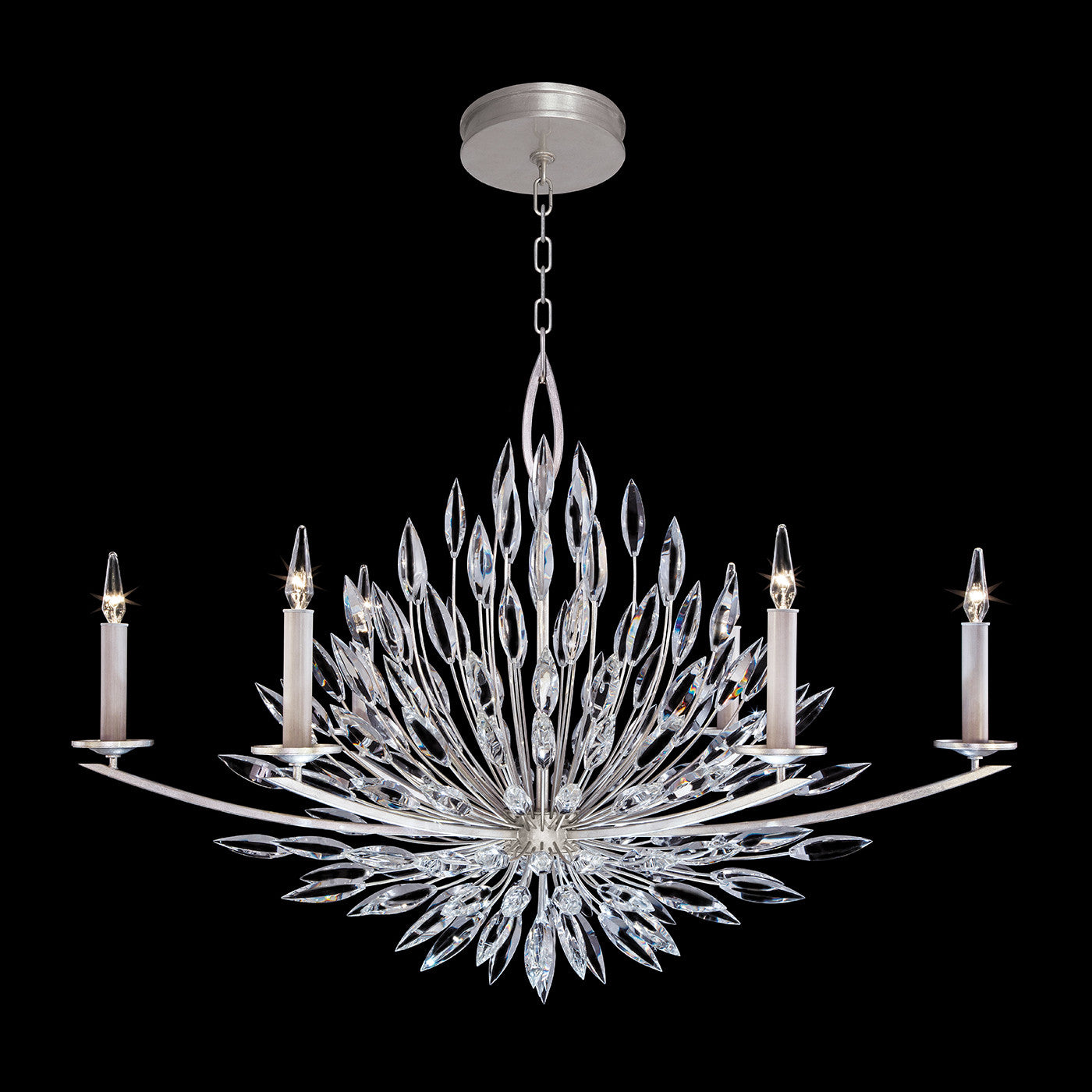Chandelier with graceful bouquets of faceted crystal lily buds that create a naturally elegant lighting effect. Available in Gold and Silver finish.