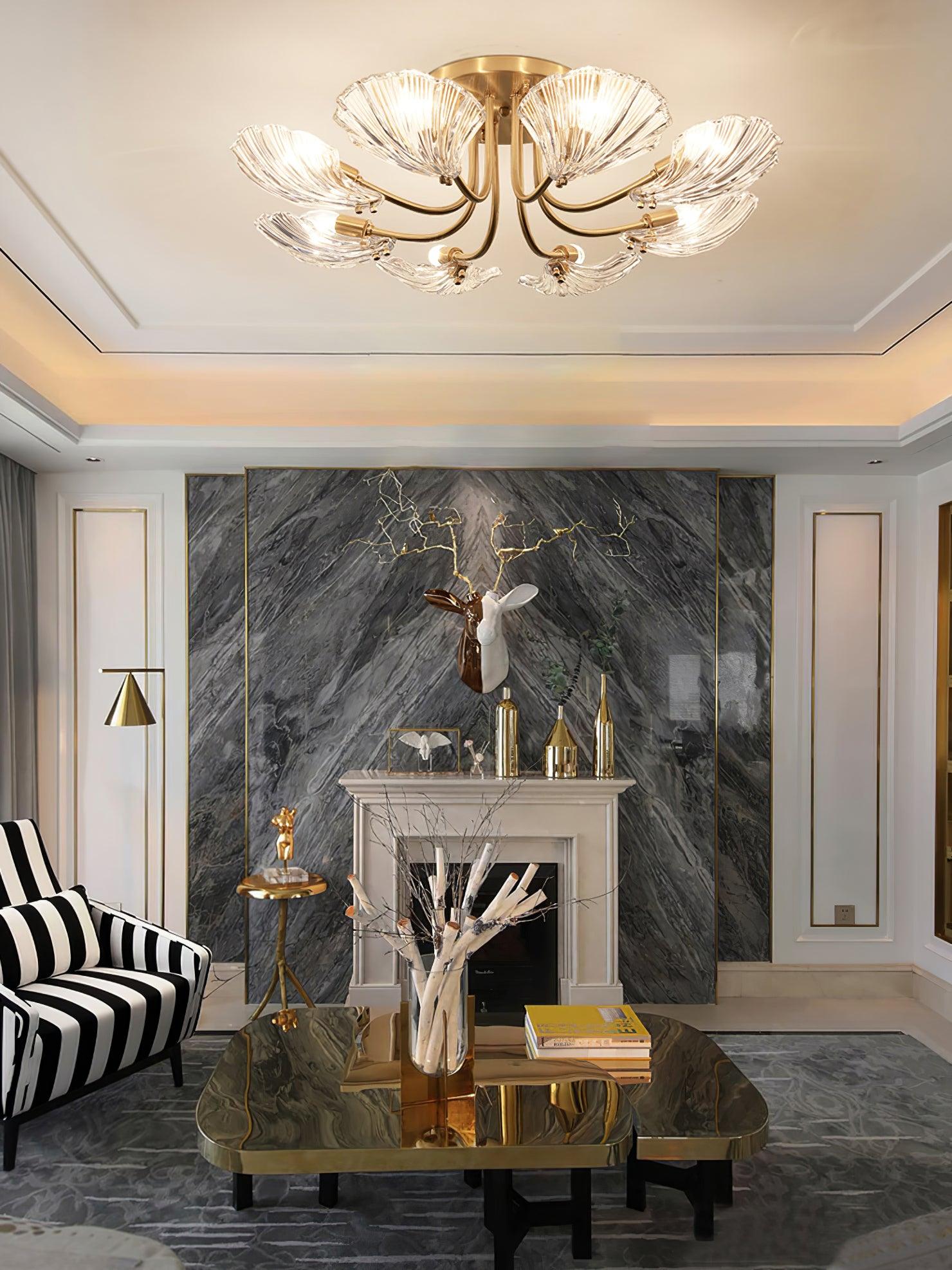 This Luxury Shell Brass Ceiling Lamp is a timeless piece of lighting for your home. The brass frame and shell-shaped lampshade provide a premium look and feel, while the diffused light ensures a relaxing ambiance. The support structure is made for easy installation, so you can enjoy the warm, beautiful glow in any room.
