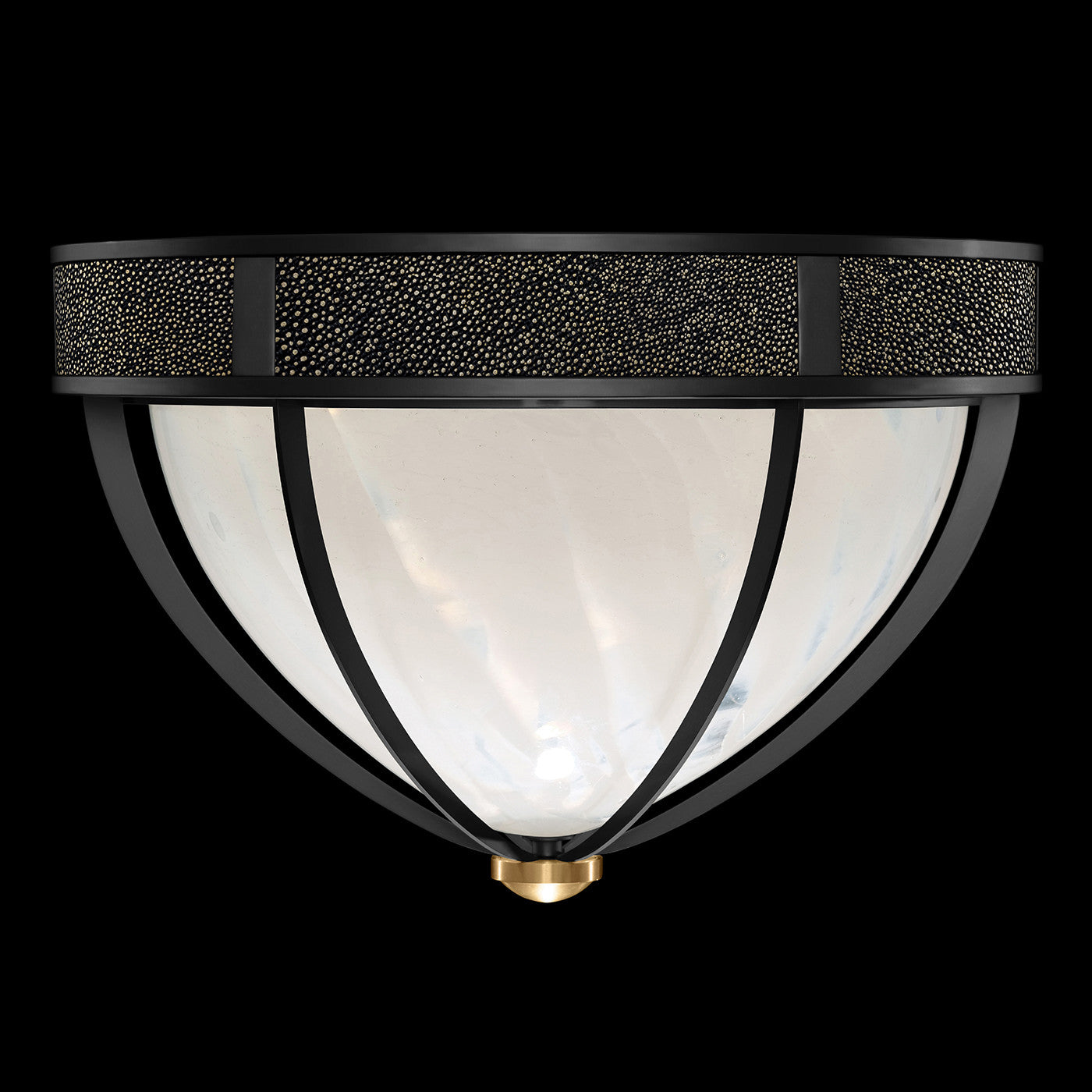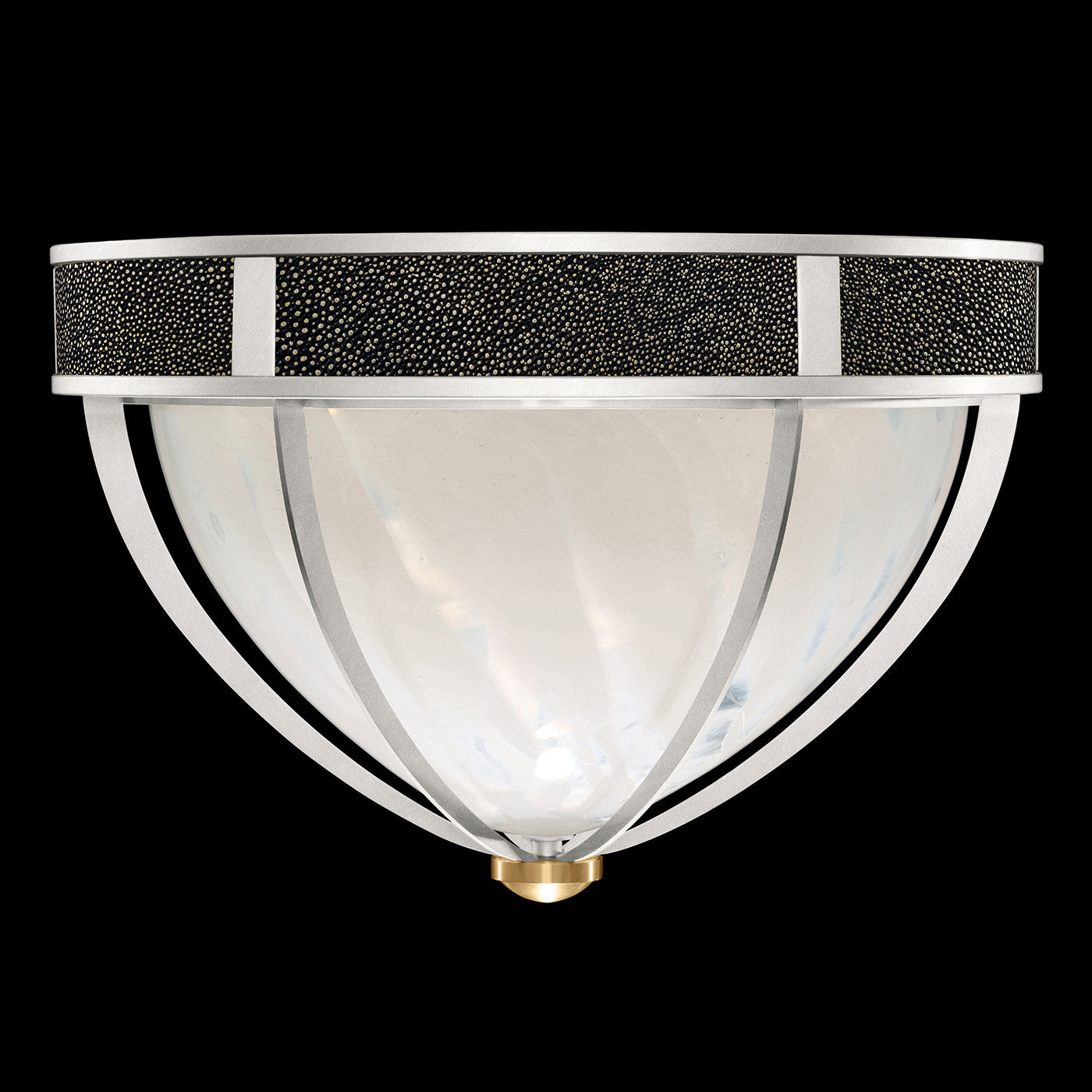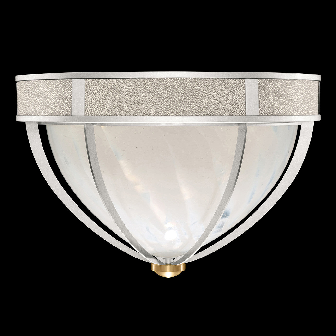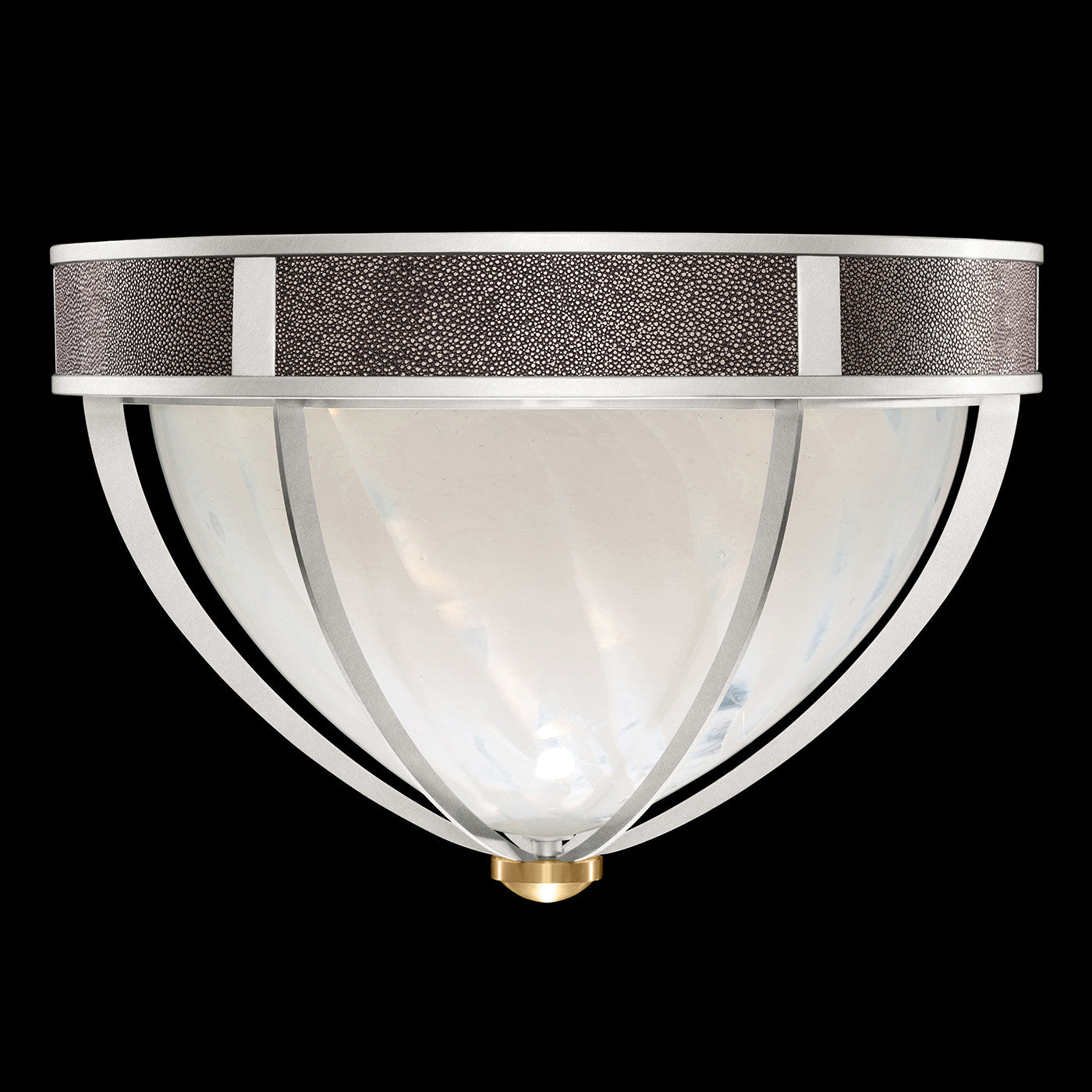 With its inviting swirls in the handblown glass echoing the gentle whirl of a desert zephyr, this Mirage flush mount fixture transforms light into a visual poetry that dances across the room. The charm of the upcycled shagreen and the elegance of mixed metals are not just a figment of imagination but tangible, customizable luxuries that elevate the everyday. Mirage is a testament to the beauty of dreams made real, an enduring emblem of refined taste and sophistication.
