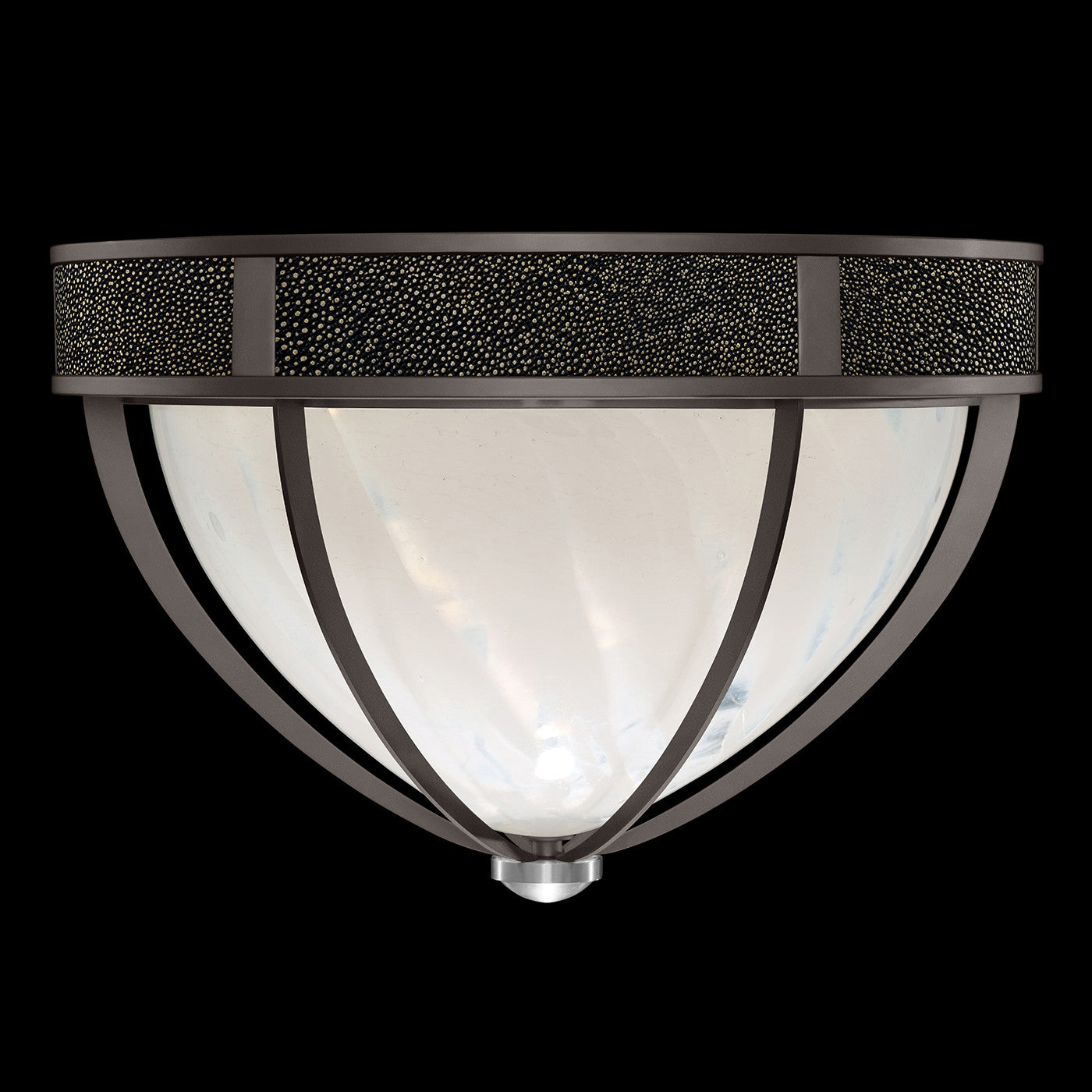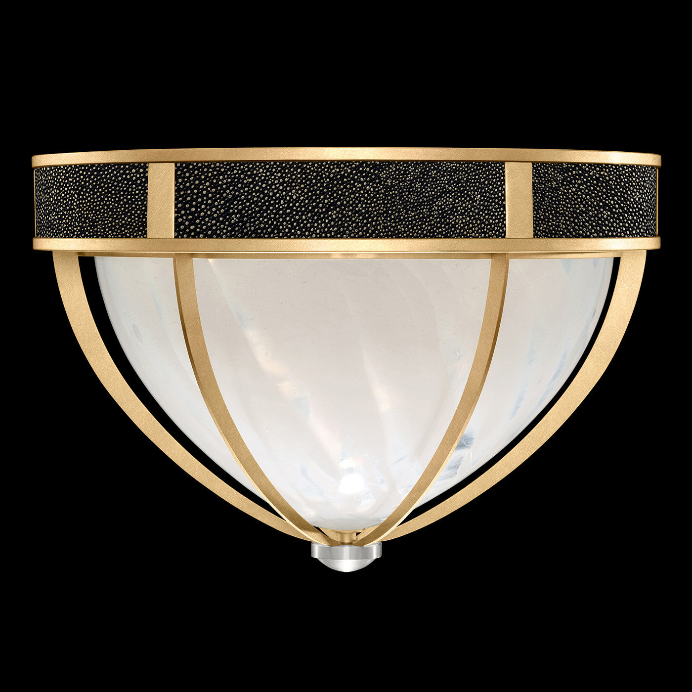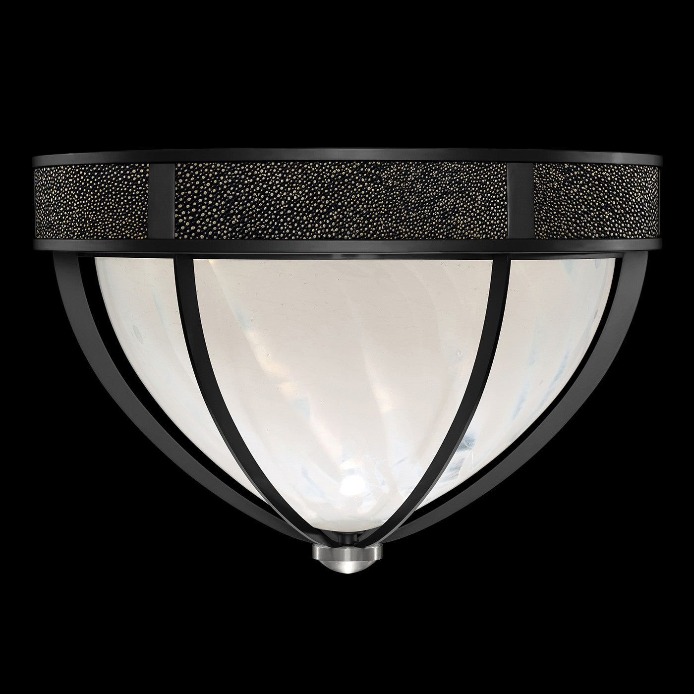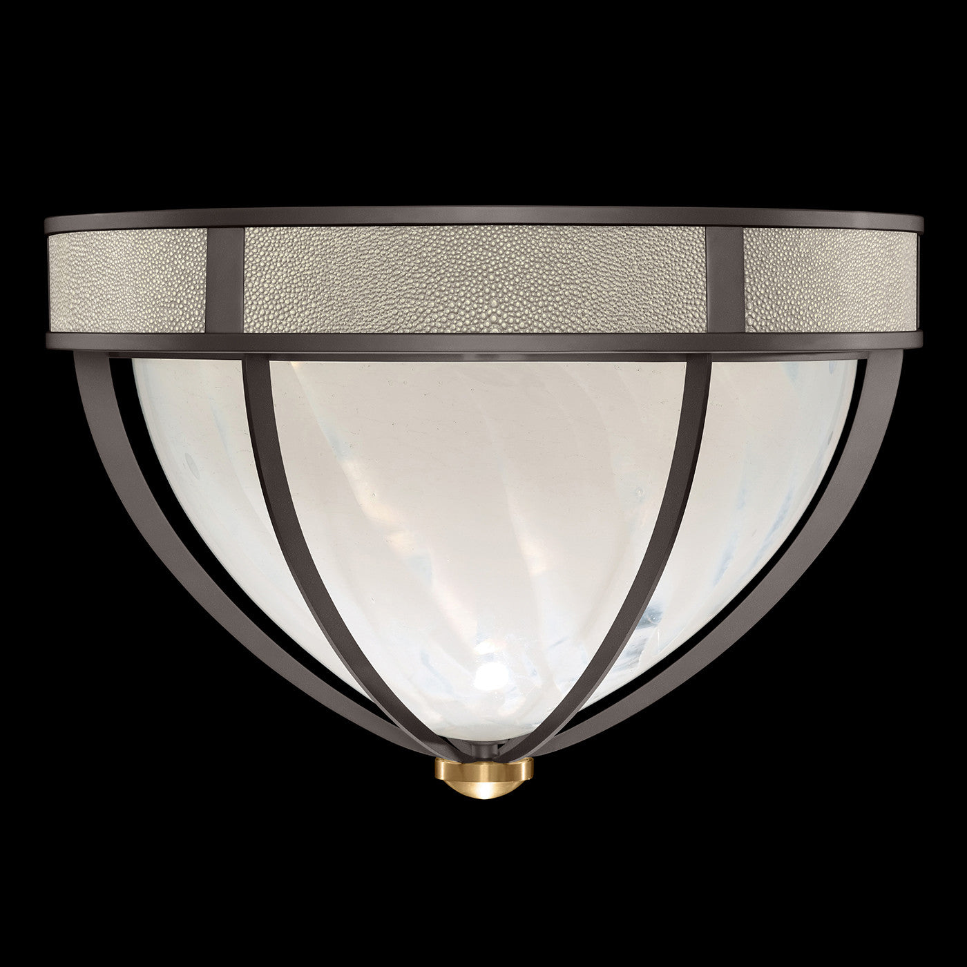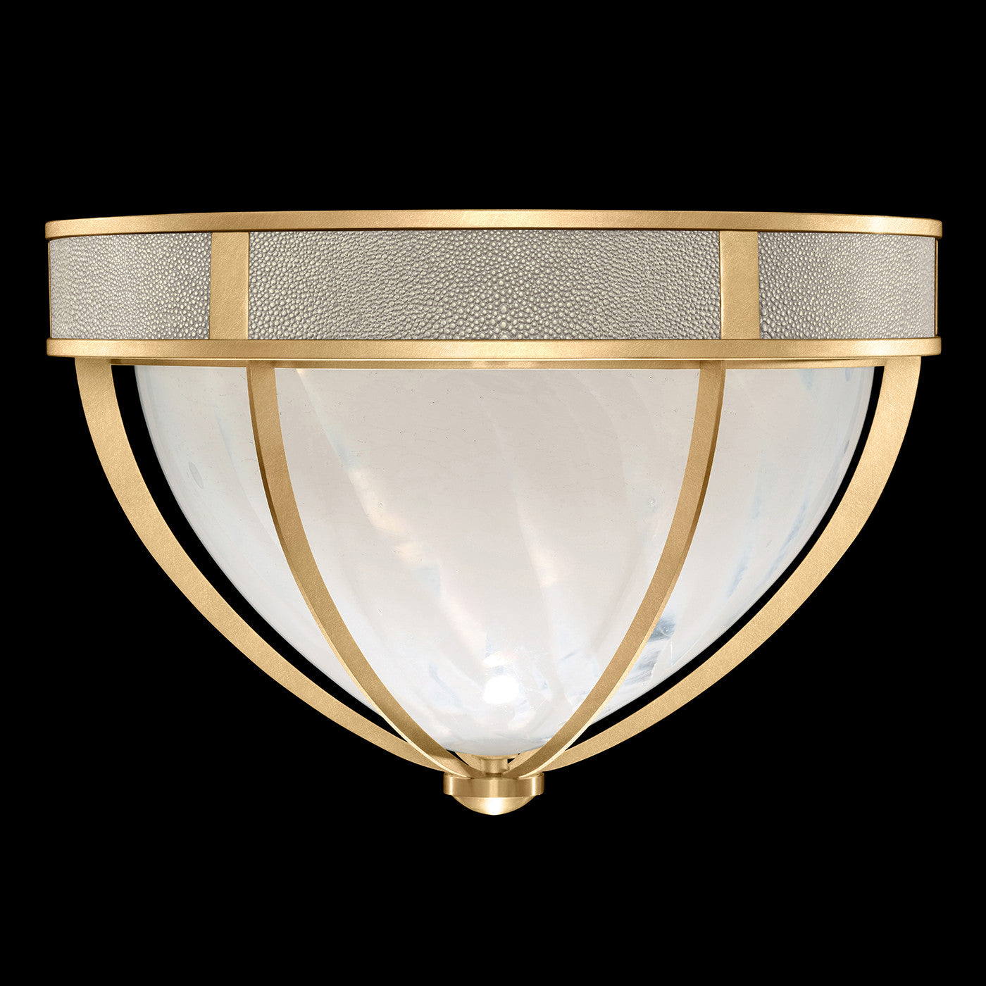 With its inviting swirls in the handblown glass echoing the gentle whirl of a desert zephyr, this Mirage flush mount fixture transforms light into a visual poetry that dances across the room. The charm of the upcycled shagreen and the elegance of mixed metals are not just a figment of imagination but tangible, customizable luxuries that elevate the everyday. Mirage is a testament to the beauty of dreams made real, an enduring emblem of refined taste and sophistication.