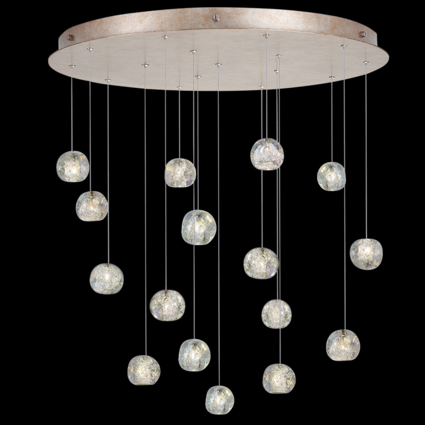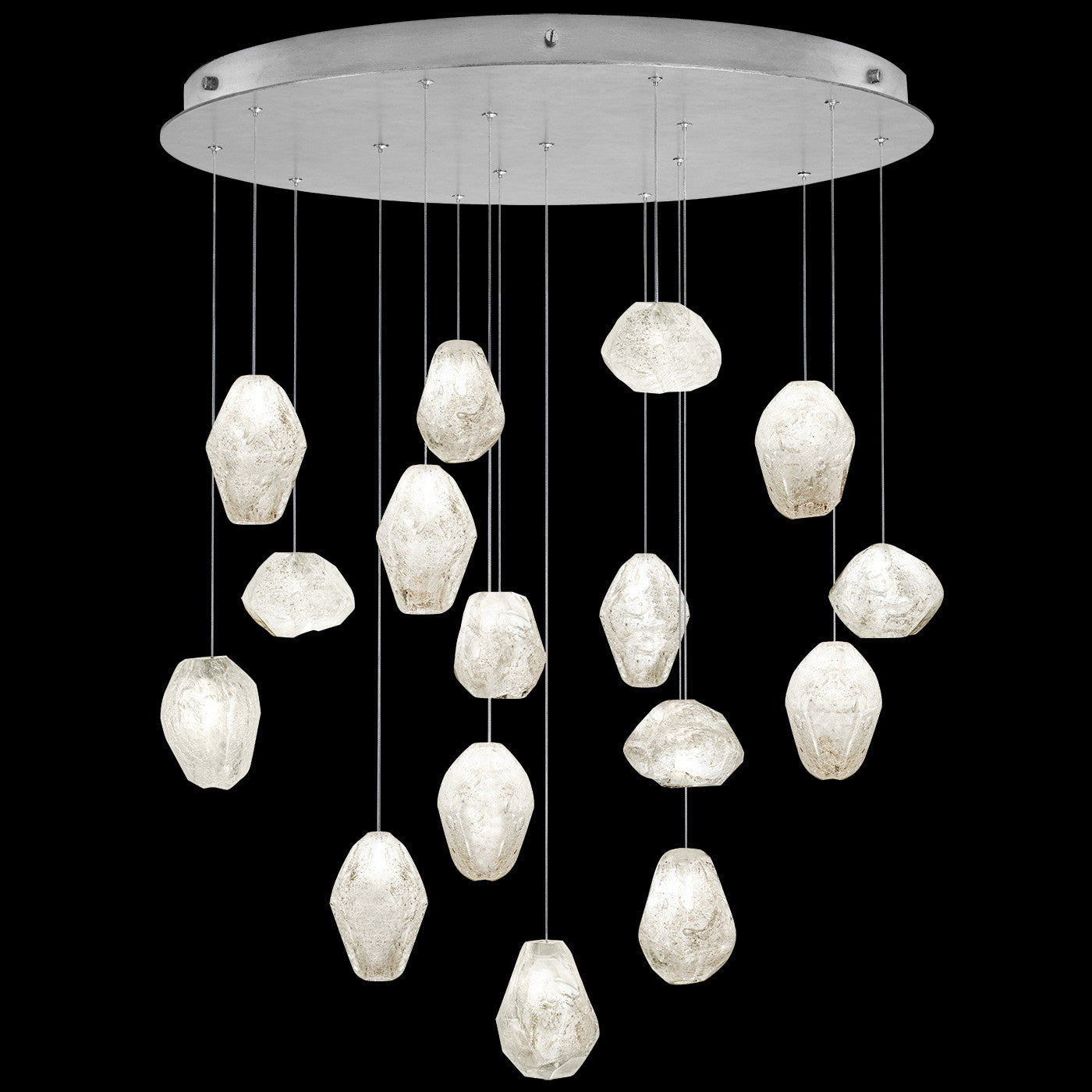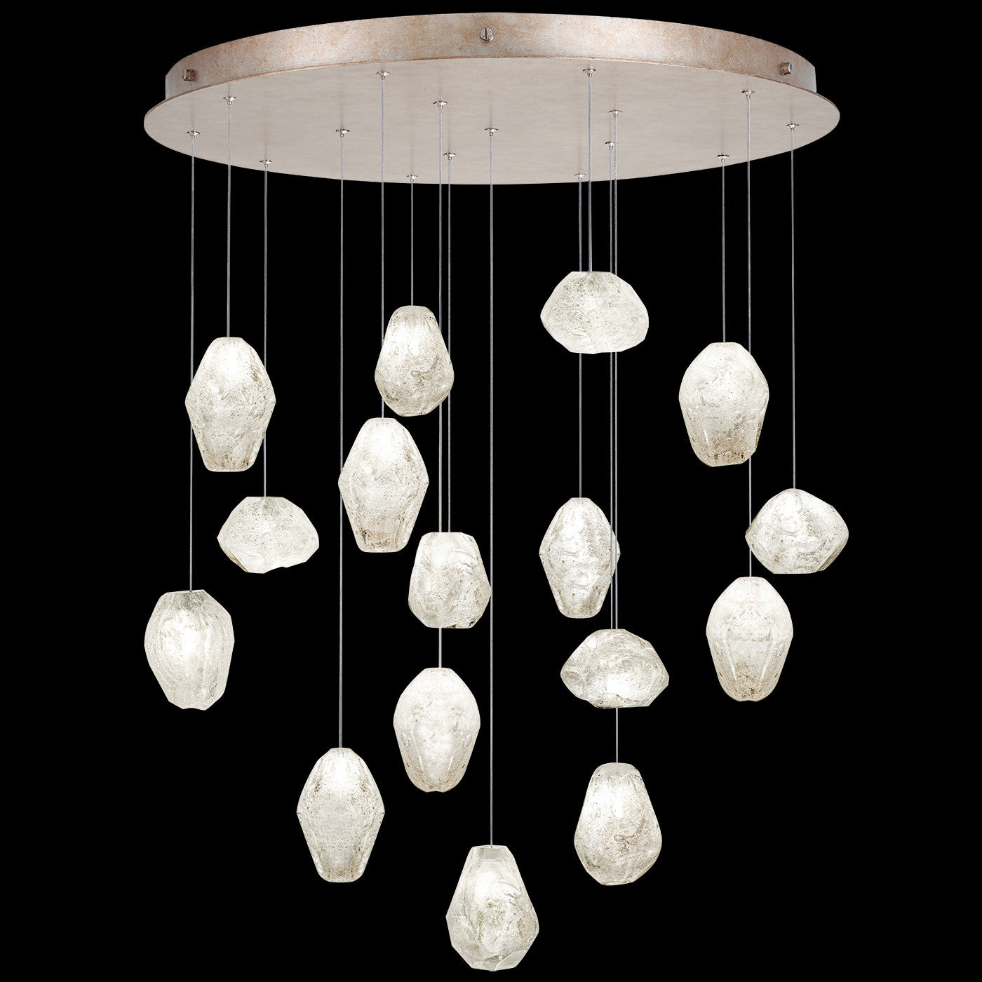 Pendant available in Silver and Gold finish with either Nebula glass, Clear Quartz glass or Natural Quartz glass . For 220V, item is configured with halogen G4 bulb(s).