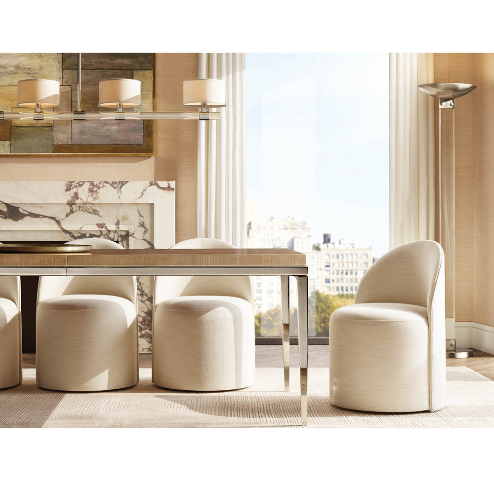 • Each arm is fitted with an Ivory linen closed-top drum shade