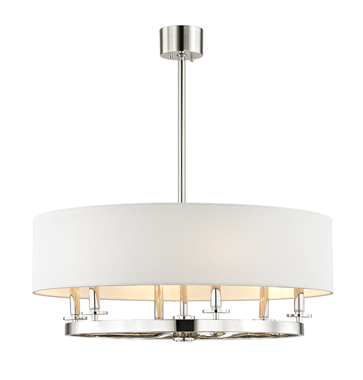 Durham sets a wheel alight, softened by a wide drum shade of off-white linen. Set in a streamlined style that doesn't evoke any specific age, Durham works especially well in transitional and neutral spaces.
