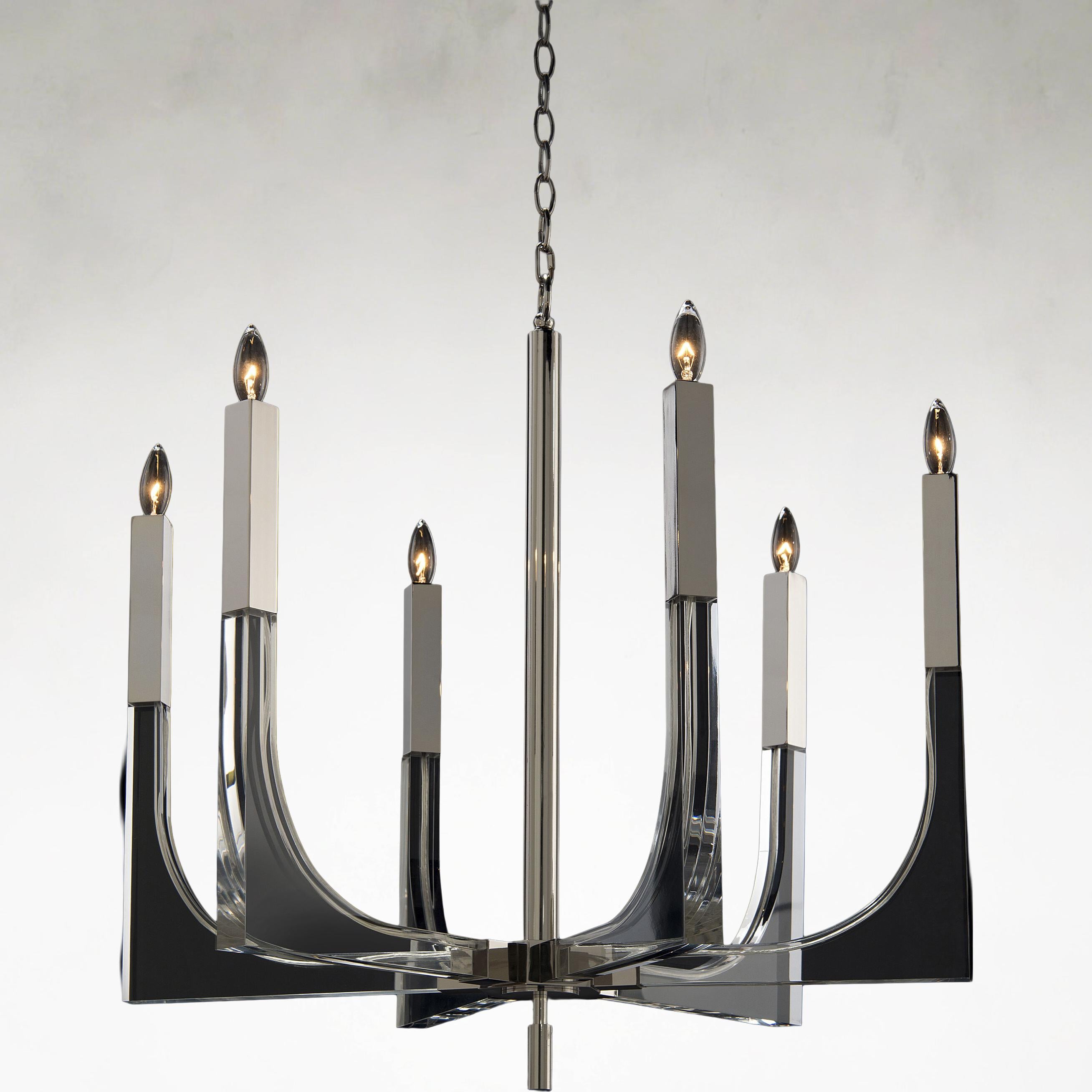 Six-Light Acrylic and Nickel Ceiling Chandelier