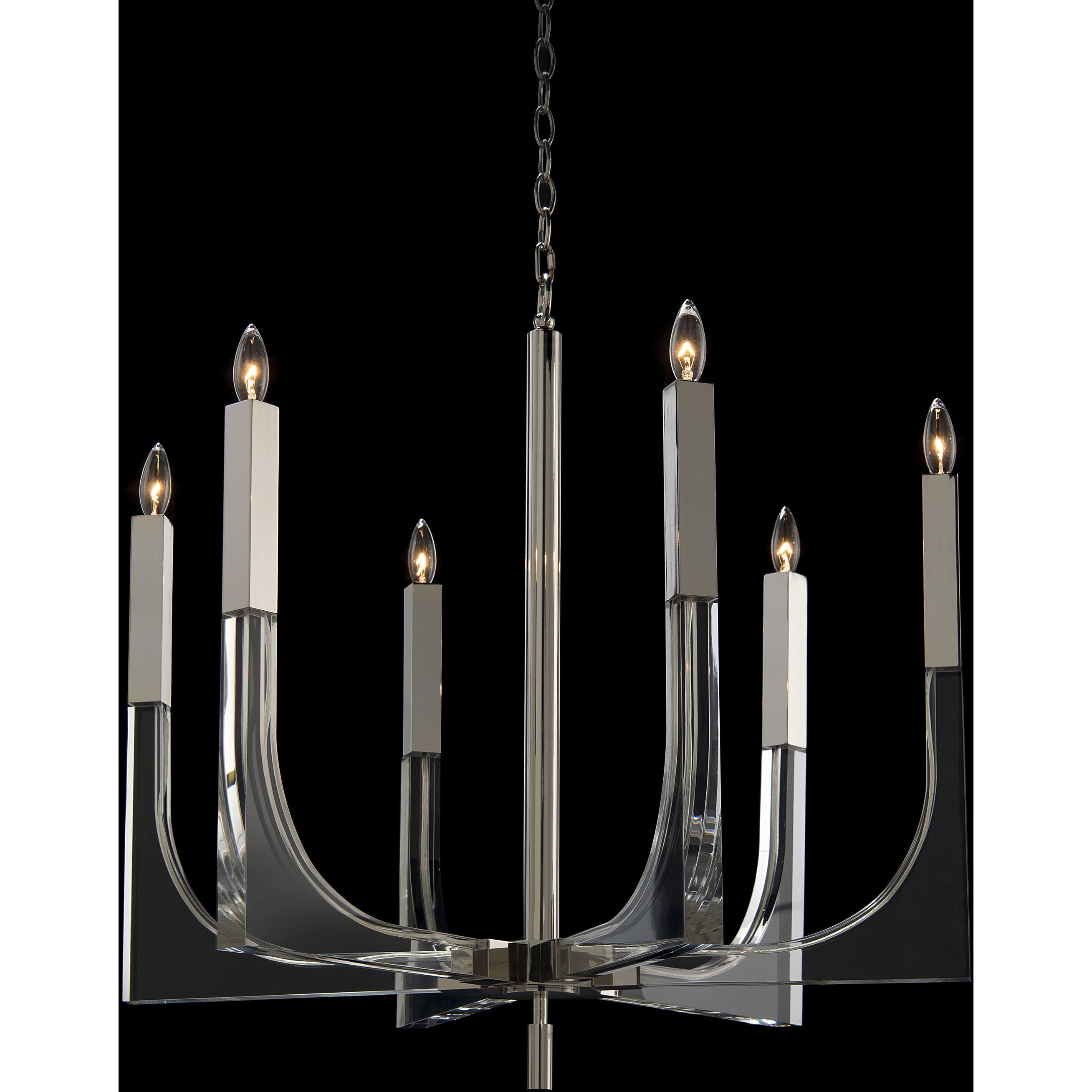 Key Attribute 29 in × 30 in × 30 in acrylic nickel six-light chandelier