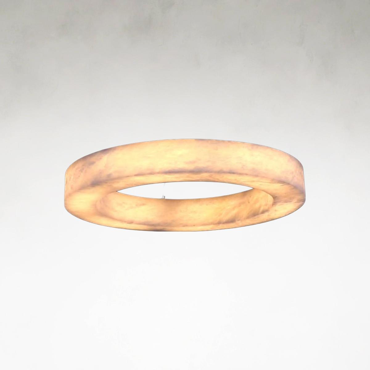 Meta Description A stunning alabaster halo pendant that fuses natural stone with contemporary design. Its soft diffused glow and antique brass details make it ideal for boutique restaurants, hotel suites, and expressive modern interiors.