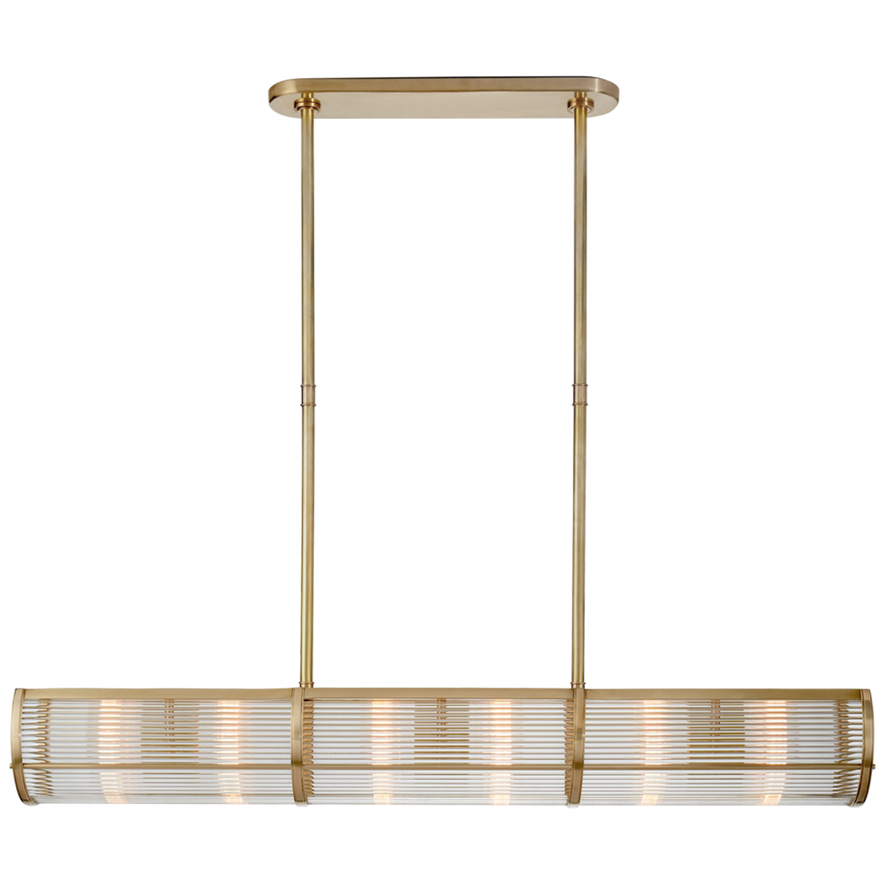 The art deco-inspired Cannes pendant by Ralph Lauren will become a refined focal point for any kitchen or living room. Suspended by delicate, sleek metal chains, the piece's perfect diamond silhouette frame holds white glass panels to diffuse an elegant light with impressive aplomb.