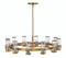 The Reeve chandelier balances sophistication with simplicity. The low-profile traditional silhouette is elevated by a wealth of elegant clear glass cylinders. Each glass is secured with a cast double-T bracelet matching the frame's luxurious finish, and finished with a corresponding metal band at the top.