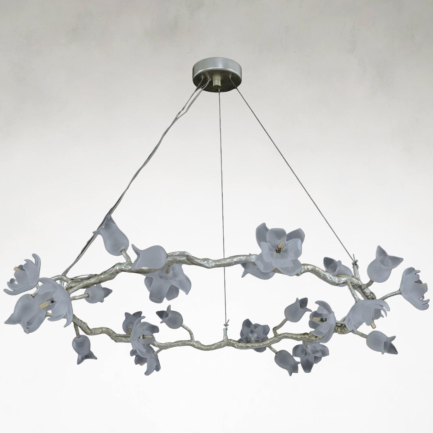 Product Name Churippu Magnolia & Tulip Glass Silver Leaf Twelve-Light Halo Chandelier
