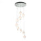 The Griffin Starburst Pendant features six unique, "thumbprint" glass shades. The starburst design is achieved with handcrafted, hammered steel rods created by Vermont artisans to look like the natural tree bark of intersecting twigs.The organic shaped glass is available in clear and cool grey.