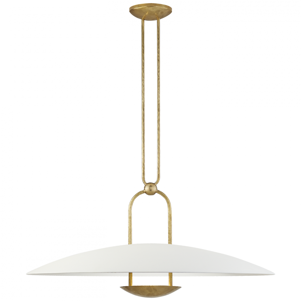 The Karlie by Ralph Lauren honors the designer's fashion and equestrian-inspired heritage. An adjustable, hanging leather shade in chocolate or saddle brown is held by polished nickel or natural brass. It conceals a floating diffuser, casting an elegant light throughout any office, study, or bedroom.