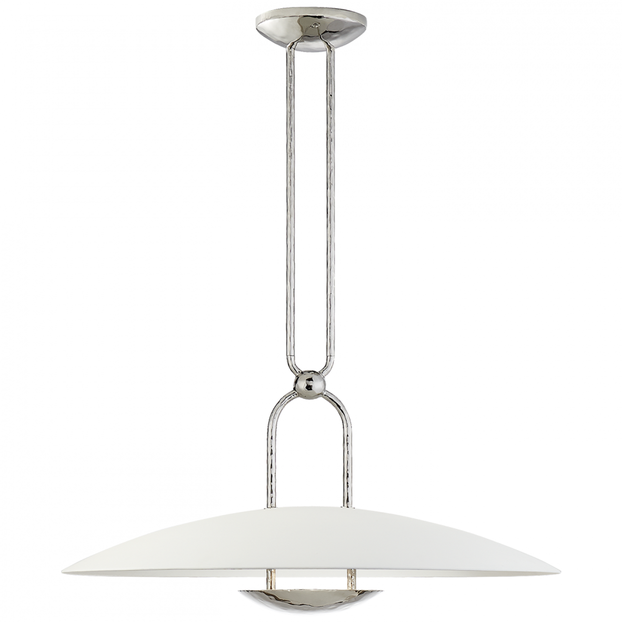 Karlie Large Hanging Shade - Polished Nickel and Chocolate Leather