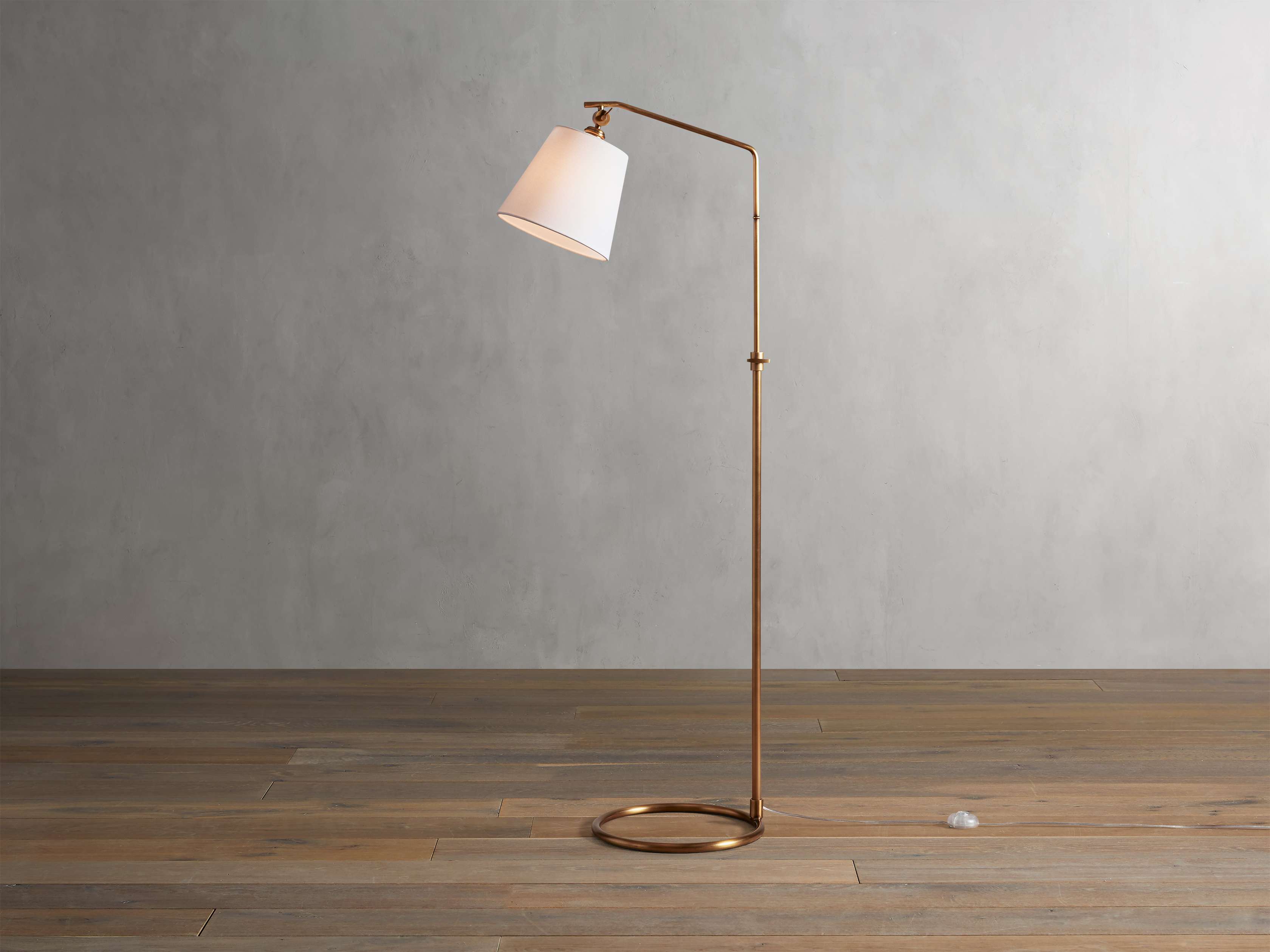 Our Kellen Lighting Collection features table lamps and floor lamps crafted from solid iron with antiqued brass or aged brass finishes complemented by contrasting linen shades. Kellen’s adjustable arms tilt, pivot, and raise or lower to meet your preferred angle, while the unique circular bases provide visual interest for any room in your home.