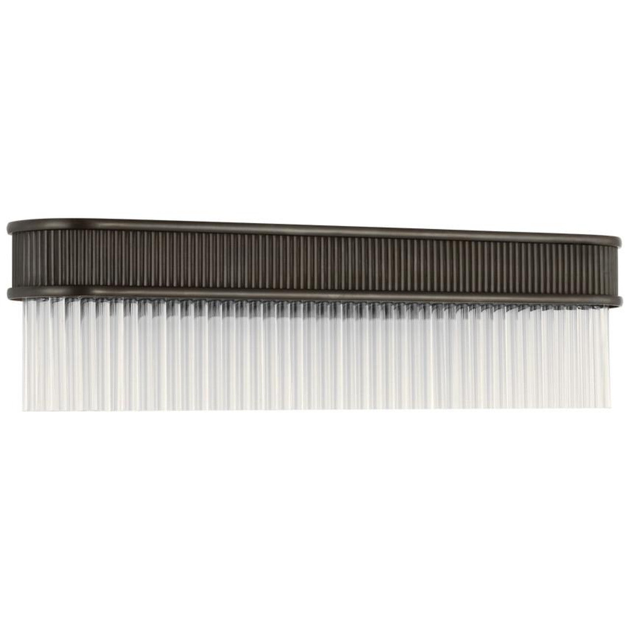 The Menil LED Wall Sconce from Visual Comfort Signature, designed by Marie Flanigan, showcases a stunning display of linear design. A cascading arrangement of glass rods descends from the mounting plate, creating a mesmerizing waterfall effect that comes to life when illuminated. Perfect for luxury bathrooms, this fixture makes a striking statement when placed along dramatic hallways or flanking large mirrors, enhancing the dynamic relationship between light and glass.