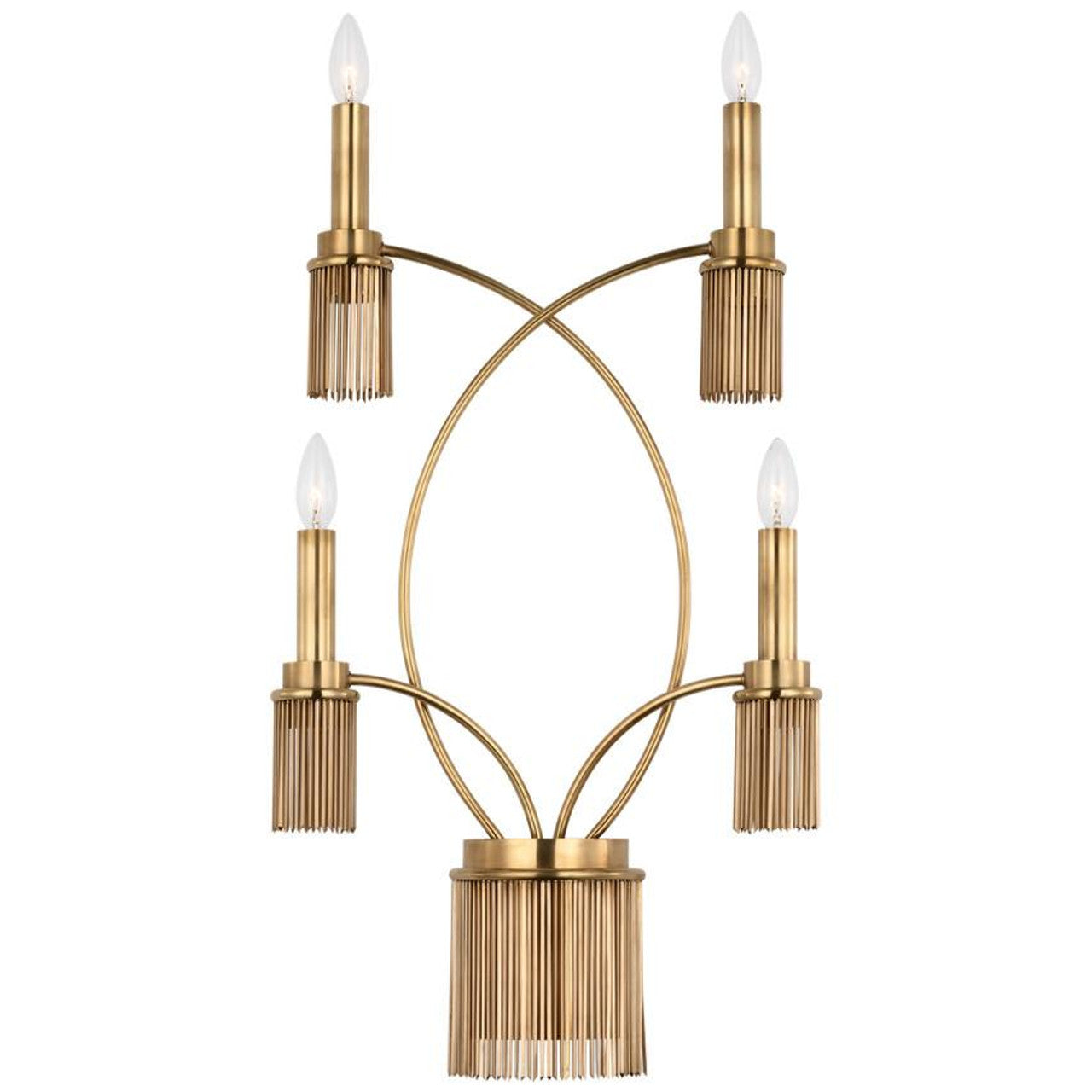 The Sutton 4-Light Wall Sconce brings elegant drama to your space. Curved arms with candle holders are paired with cascading metallic fringe, reflecting bold shadows. Designed by Fisher Weisman, this piece combines vintage-inspired details with modern flair. Ideal for hallways, dining rooms, and living spaces, it adds both dimension and theatrical style to any room.