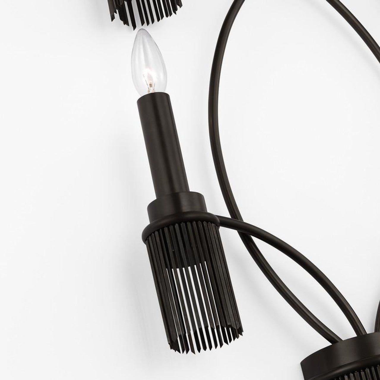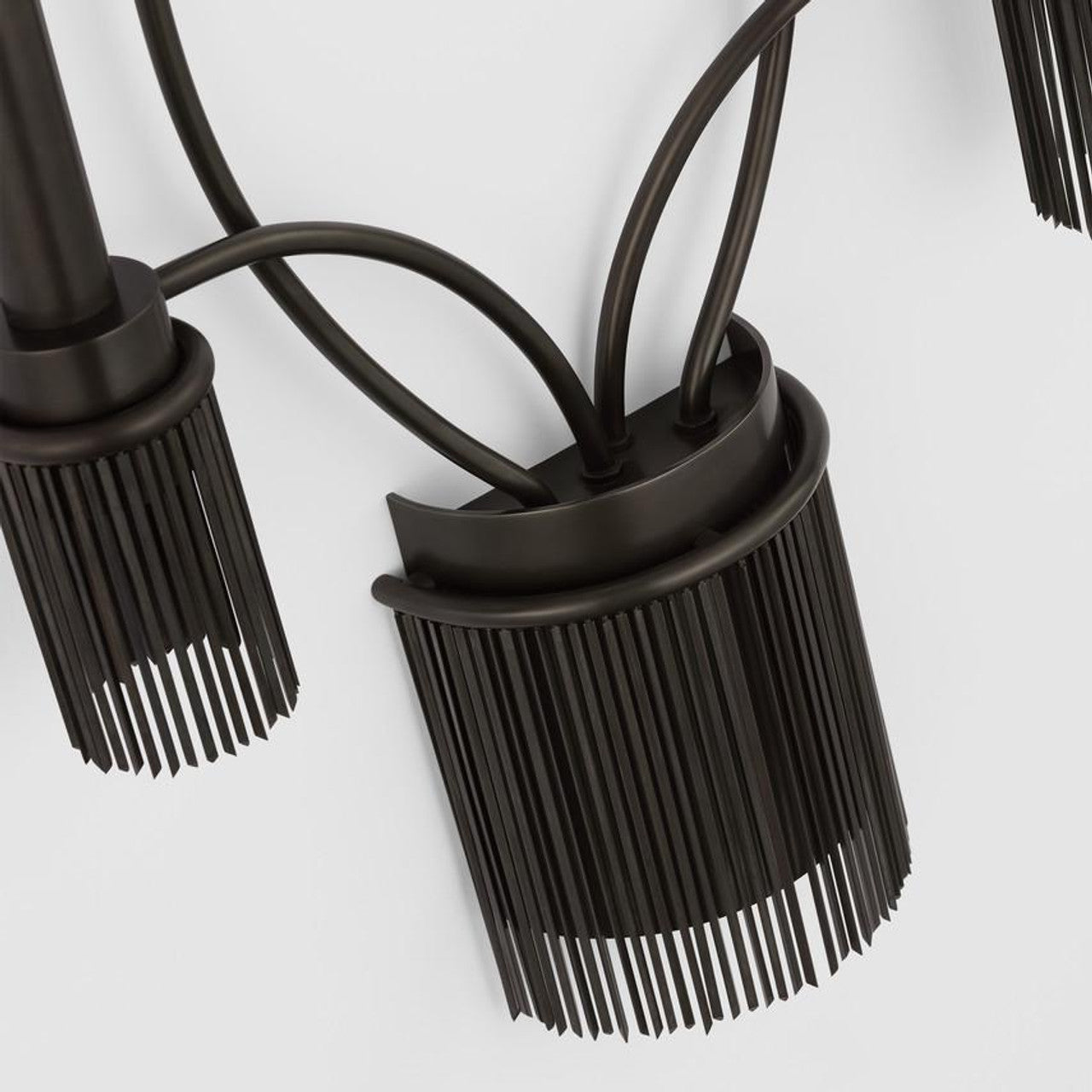 The Sutton 4-Light Wall Sconce brings elegant drama to your space. Curved arms with candle holders are paired with cascading metallic fringe, reflecting bold shadows. Designed by Fisher Weisman, this piece combines vintage-inspired details with modern flair. Ideal for hallways, dining rooms, and living spaces, it adds both dimension and theatrical style to any room.