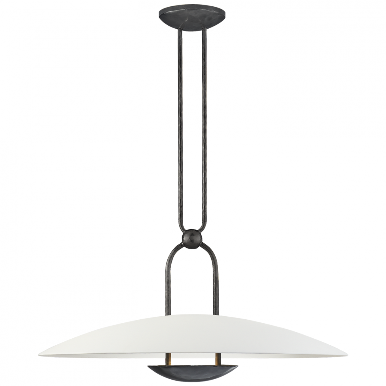 The Windsor by Ralph Lauren is a unique, elegant piece. Its minimalist frame and slender chains in brass, bronze, or nickel support a trimmed silk shade with sophisticated box pleats. The statement piece will cast a refined light on any contemporary or traditional space.