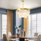 • The glass chandelier features a sleek round metal frame in rich copper, perfectly complementing the small round glass shades with captivating bubble details. The round glass shade, clear with delicate bubbles, adds a touch of sophistication and creates a mesmerizing visual effect when light is illuminated.