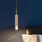 Elongated Slender Cylinder Modern Gold Crystal Column Pendant Lights