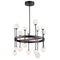 The Sunburst 12-Light Chandelier is unique & a definite beautiful focal point. The exterior frame is matte black encasing aluminum color thin hollow rods attached to a chrome center.