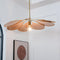 The unique pairing of metal and fabric creates an ethereal and floral suspended design. Inspired by classic louvered ceiling fans, the designer incorporates a sleek, teardrop-shaped petal. This pendant delicately diffuses light, providing a soft clarity in the room and casting delicate shadows on the ceiling.