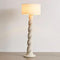 Light up your space with elegant whimsy when you display this twist-base floor lamp. Featuring a round base and twisting resin neck, topped with a woven drum shade. Plugs in to power on; compact fluorescent compatible.