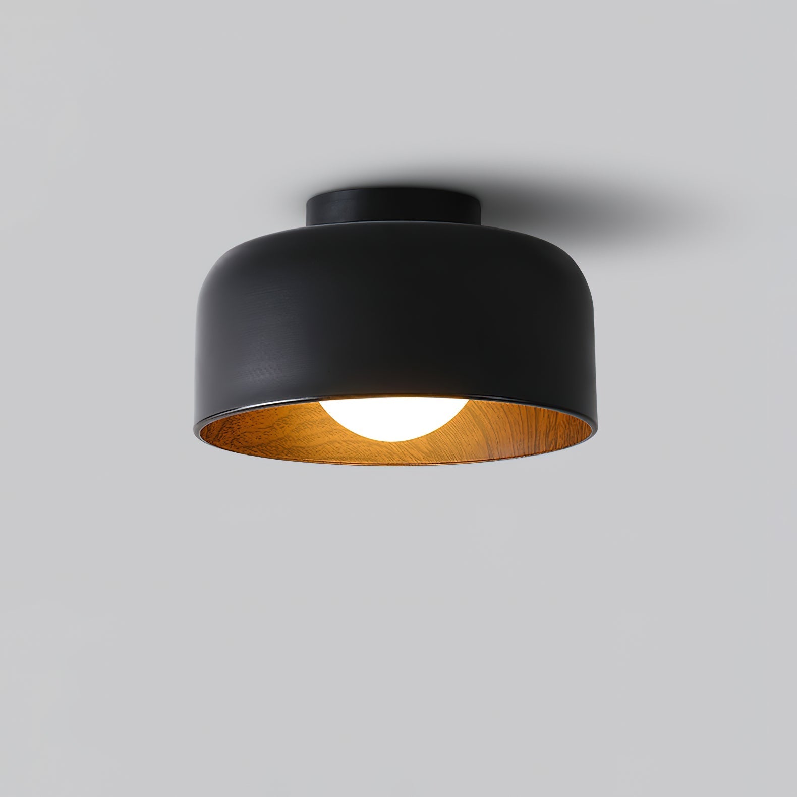Illuminate your space with the Lumosphere Ceiling Light, a statement piece designed to captivate. Its sleek matte exterior contrasts with a striking wood grain interior, creating a unique interplay of modern industrial aesthetics and natural warmth. The spherical light at its core casts a soft, inviting glow, making it a perfect centerpiece for both contemporary and eclectic interiors. Whether hung in a living room, kitchen, or cozy reading nook, the Lumosphere blends functionality with artistic flair, transforming any space into an ambient haven.