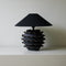The Eclipse Ruffle Table Lamp by yovinolight showcases dramatic texture and bold contrasts. Its handcrafted ceramic base features a series of sculptural, rippling ridges finished in matte black with subtle golden accents, paired elegantly with a sleek black conical fabric shade. Perfect for adding a statement piece to modern, eclectic, or artistic interiors, it delivers a warm, ambient glow with a distinctly contemporary edge.rn, industrial, or contemporary interiors, adding dramatic flair with a warm, focused glow.