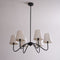 Introducing the Lumos Black Chandelier, a harmonious blend of modern elegance and minimalist design. This sleek chandelier features a striking black metal frame that radiates contemporary charm, paired with soft fabric lampshades to create a warm, inviting glow. The clean, curved lines of its arms contrast beautifully with the delicate texture of the shades, making this light fixture the perfect centerpiece for any living or dining room.