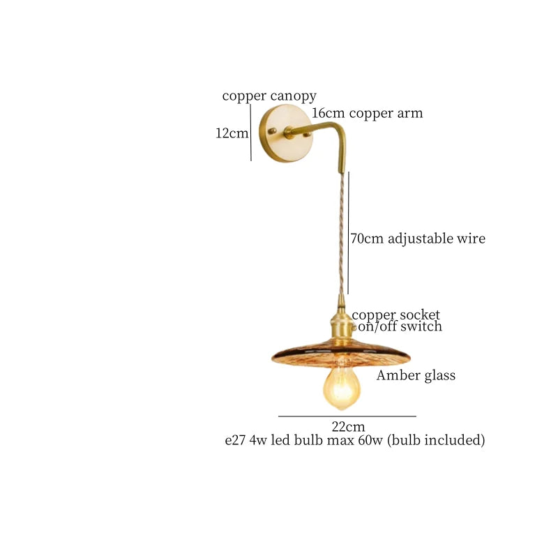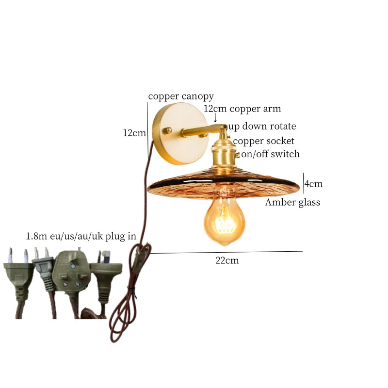 Glass LED Wall Sconce Bedroom Loft Bathroom Stair Light Pull Chain Copper