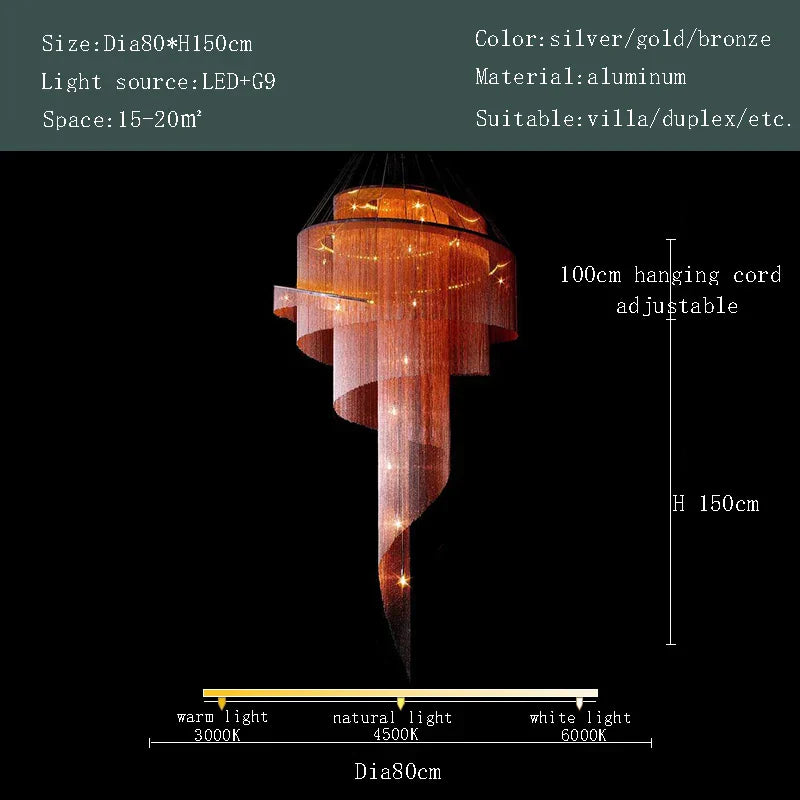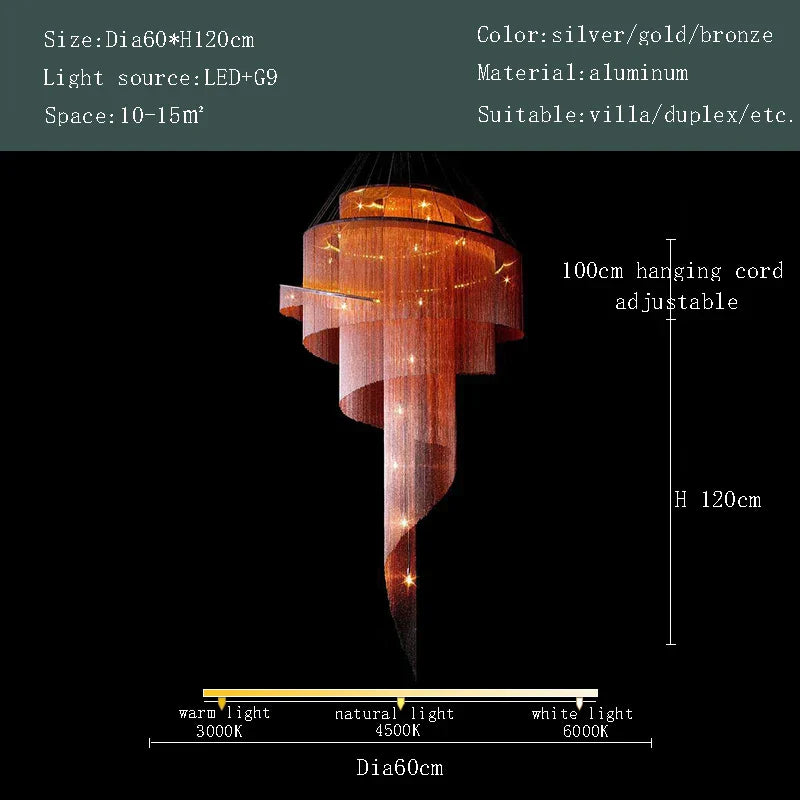 Crafted with high-quality aluminum body material and featuring a polished steel finish, the Gold Tassel LED Chandelier exudes a sense of opulence and style. The tassel detailing adds a unique and artistic flair to the design, making it a focal point of any space.