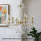 Crafted with high-quality iron material and finished in polished copper, this candle chandelier is designed to captivate and illuminate any space. The LED bulbs emit a luminous flux ranging from 249 to 2000, creating a warm and inviting atmosphere.
