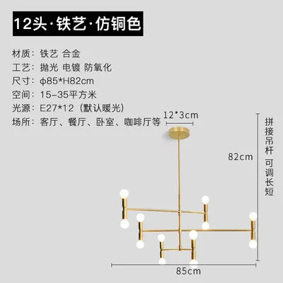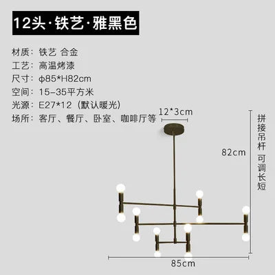 Modern Black Gold Chandelier Branch Design for Loft Bedroom Living Room Nord Fashion Atomium.