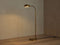 • Iron floor lamp features a brass finish.