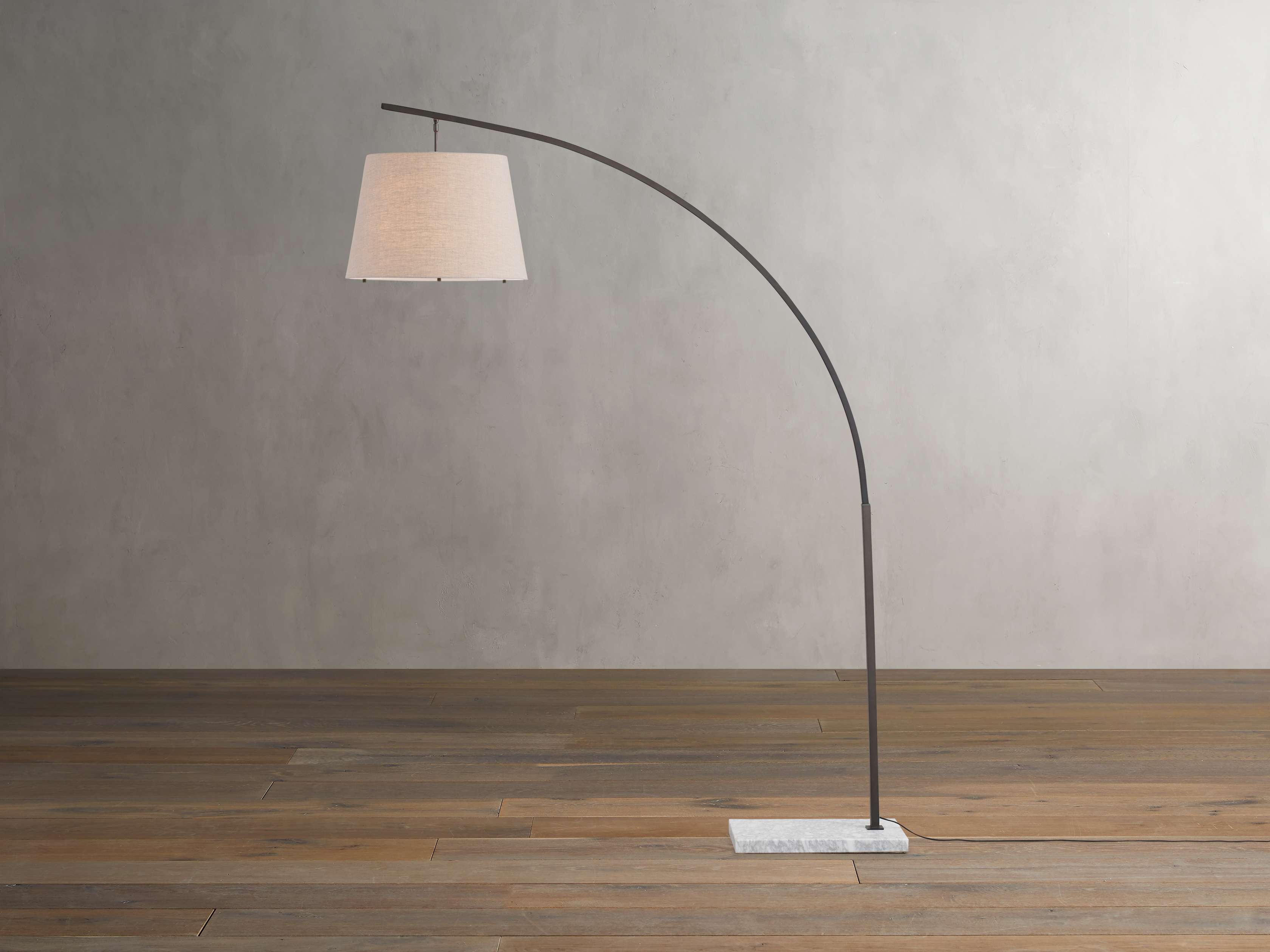 A subtle curved iron frame grounded by a Carrara or espresso marble base creates the minimalist appeal of our Tadeo Floor Lamp. The stunning brass or bronze finishes are complemented by coordinating linen shades that finish the look, and an optional shade diffuser softens the glow for the perfect ambience in your space.