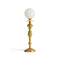 Crafted in brass, this candelabra table light is the perfect centerpiece for indoor gatherings. Three of its arms curl outwards from its sides, while the fourth straight arm stems upwards from the center and stands slightly taller than its companions.?