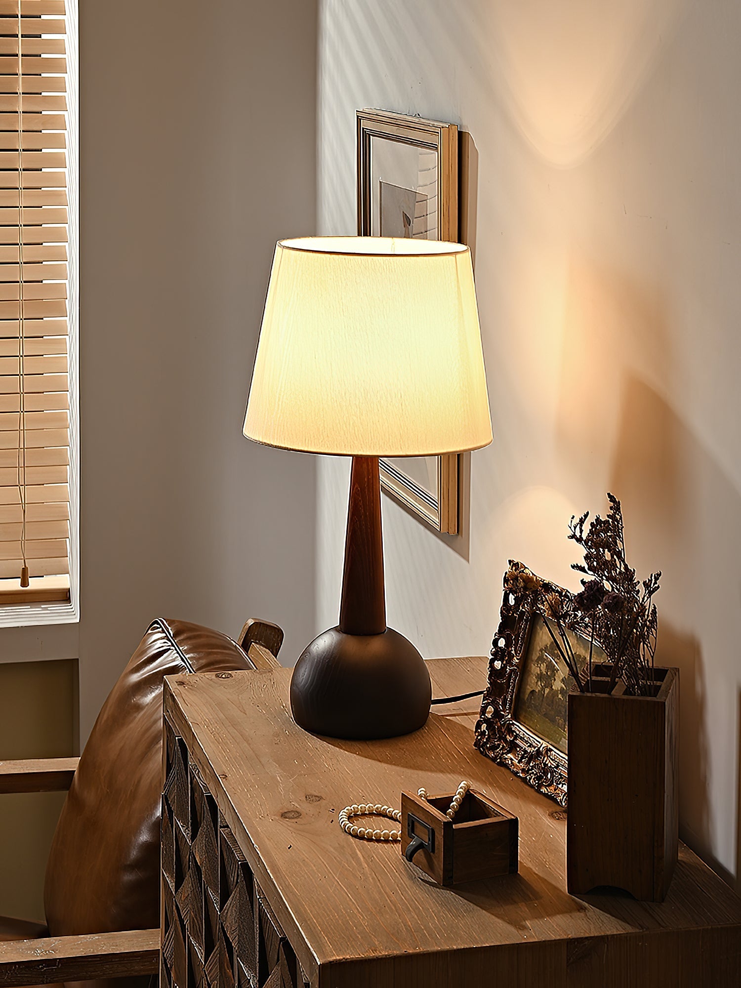 The Orben Wood Table Lamp blends organic warmth with clean, contemporary lines. Its smooth, rounded wooden base transitions seamlessly into a tapered stem, supporting a classic fabric shade that casts a soft, welcoming glow. The rich wood tones add depth and texture, making it an ideal accent for cozy bedrooms, living rooms, or reading corners.